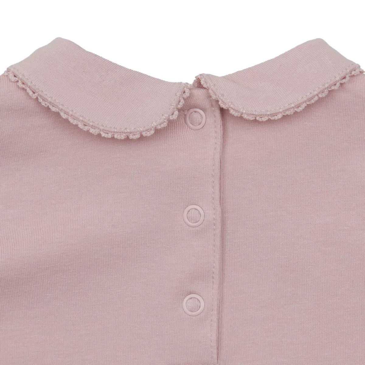 Body jersey tinta unita basico manica lunga con colletto bordo ricamato. Il modello presenta una comoda apertura entrogamba con bottoncini a pressione per facilitare il cambio pannolino. Vestibilità comoda. Un modello super classico indispensabile per il guardaroba della tua bimba.