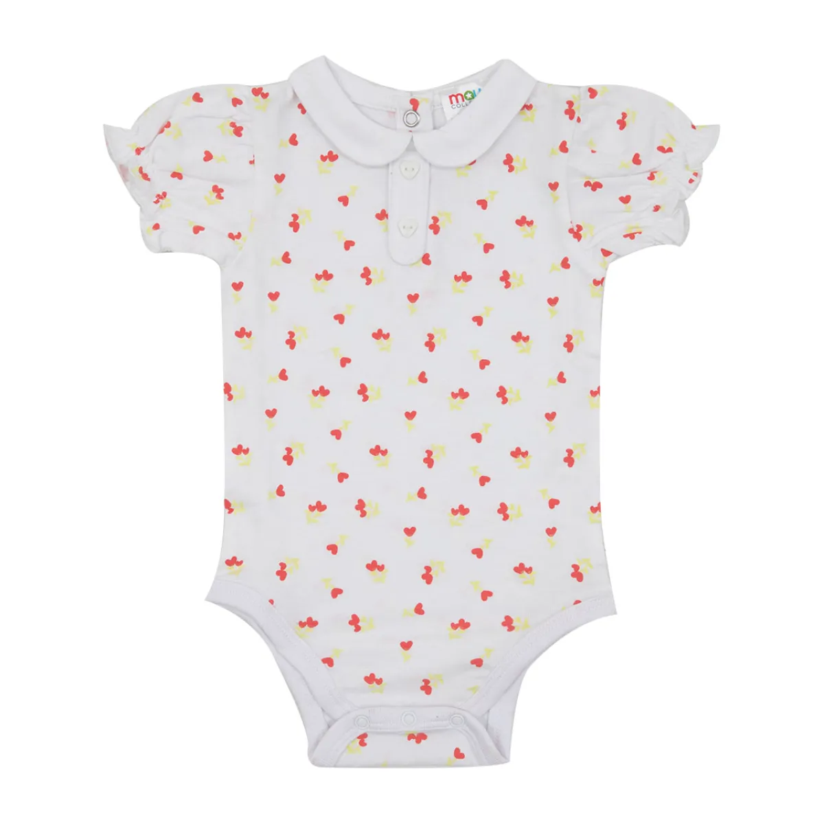 Body mezza manica da bambina. Il capo si sviluppa in total bianco con stampa allover cuoricini. Modello con colletto e bottoni. La vestibilità è morbida e pratica grazie ai bottoni a clip sulla schiena e sul cavallo. Accessori non in vendita. La confezione contiene solo il capo d’abbigliamento