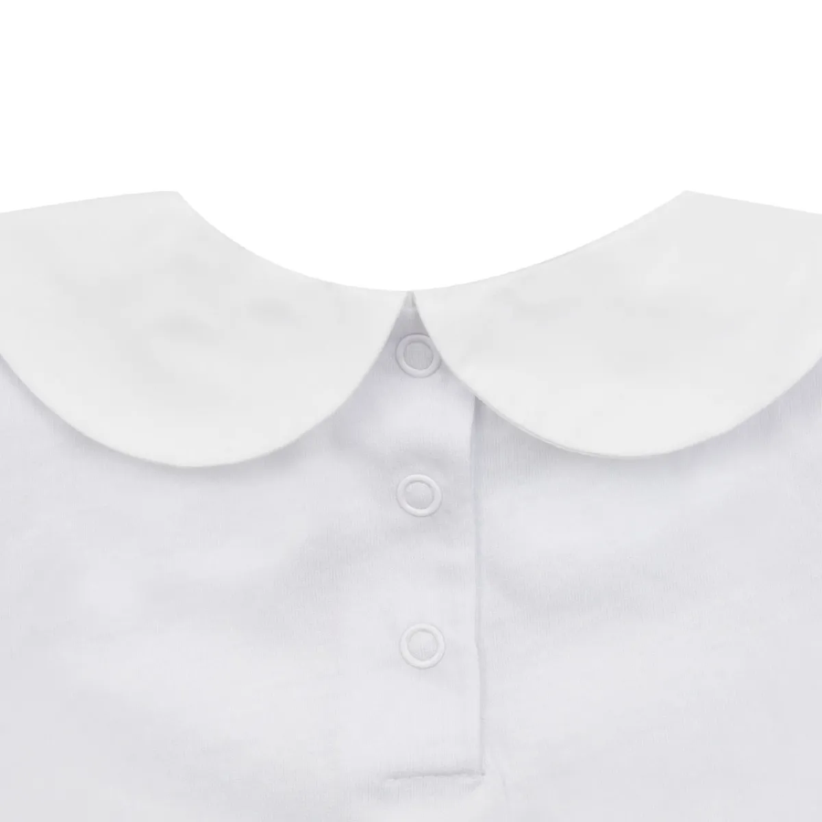 Body mezza manica da bambina. Il capo si sviluppa in total bianco con stampa piccola sul davanti. Modello con colletto largo e bottoni. La vestibilità è morbida e pratica grazie ai bottoni a clip sulla schiena e sul cavallo. Accessori non in vendita. La confezione contiene solo il capo d’abbigliamento