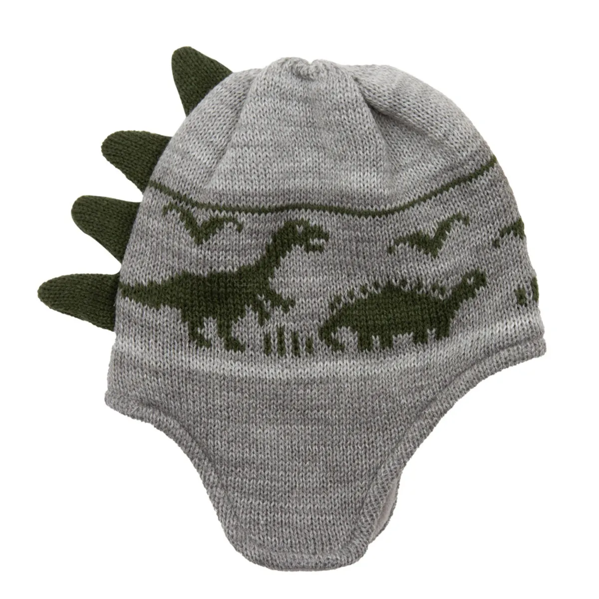 Simpatico cappello peruviano foderato in micro pile motivo dinosauri con dettaglio applicato che lo rende ancora più divertente . Interno caldo micro pile. Perfetto per le giornata più fredde.