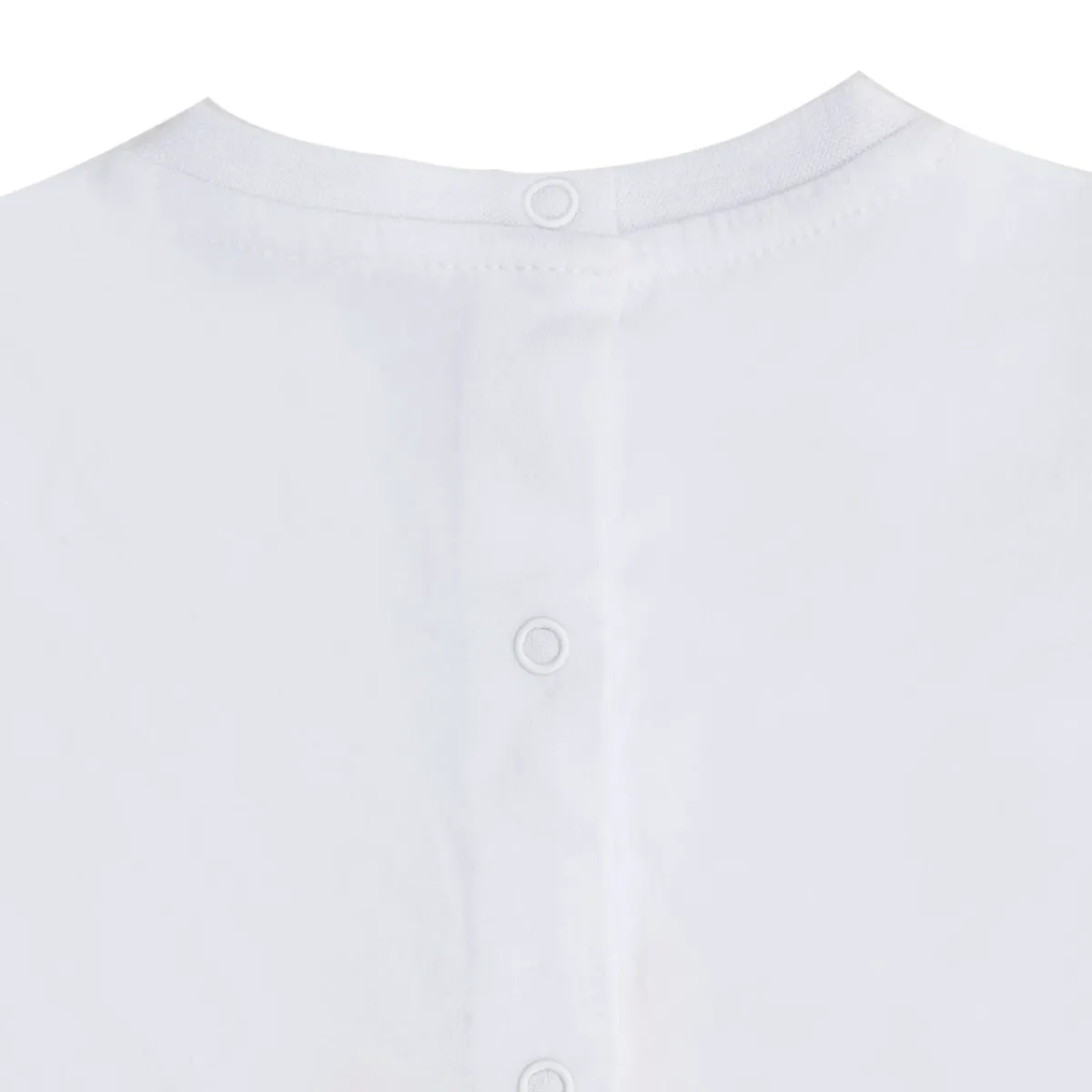 Set 2 pezzi T-Shirt e Pantaloncino da bambino. Il completino si presenta con la parte superiore stampata a tema animali in colorazioni giallo, arancio e marrone e la parte inferiore tinata unita gialla a richiamo della magliettina. La vestibilità è morbida e pratica grazie ai bottoni a clip sulla chiena e all’elastico in giro vita.Accessori non in vendita. La confezione contiene solo il capo d’abbigliamento