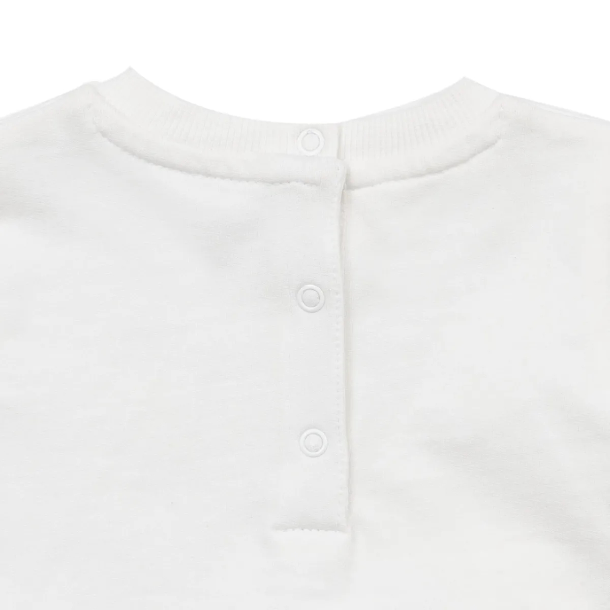 Casual ferlpa da bambina. Il capo si sviluppa in total bianco panna con stampa grande sul davanti. La vestibilità è morbida e pratica grazie alla ai bottoni a clip sul retro. La felpa da bambina è adatta a occasioni casual e facilmente combinabile. Accessori non in vendita. La confezione contiene solo il capo d’abbigliamento
