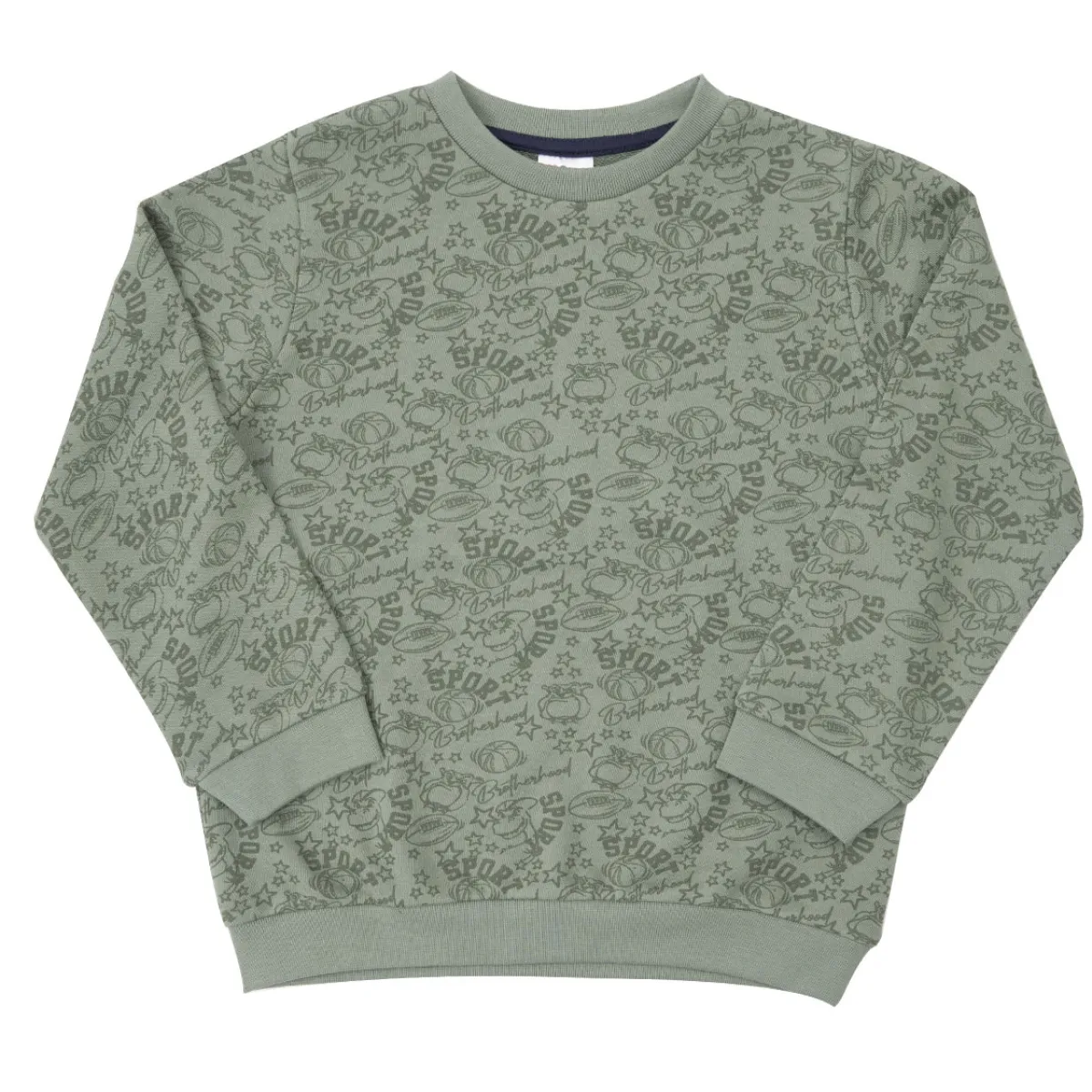 Felpa da bambino. Il capo si sviluppa in total verde con stampa allover “sport”. La vestibilità è morbida. La maglia bambino è adatta per occasioni casual. Accessori non in vendita. La confezione contiene solo il capo d’abbigliamento