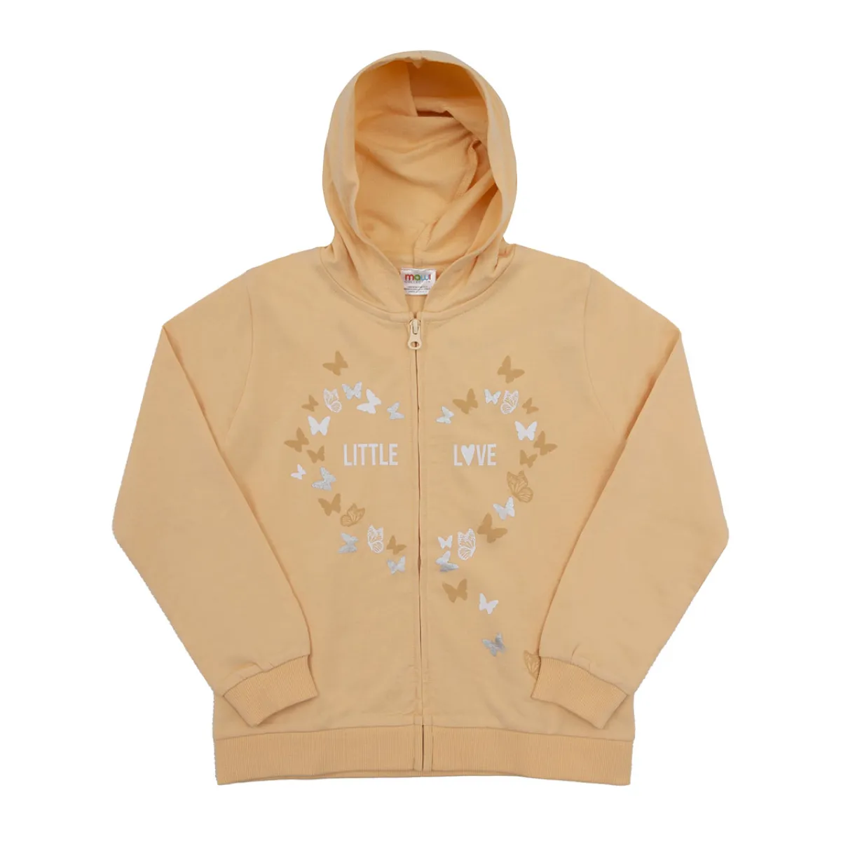 Casual felpa con zip e cappuccio da bambina. Il capo si sviluppa in total arancione chiaro con stampa frontale. La vestibilità è morbida e pratica grazie alla zip intera sul davanti. La felpa da bambina è adatta a occasioni casual e facilmente abbinabile. Accessori non in vendita. La confezione contiene solo il capo d’abbigliamento
