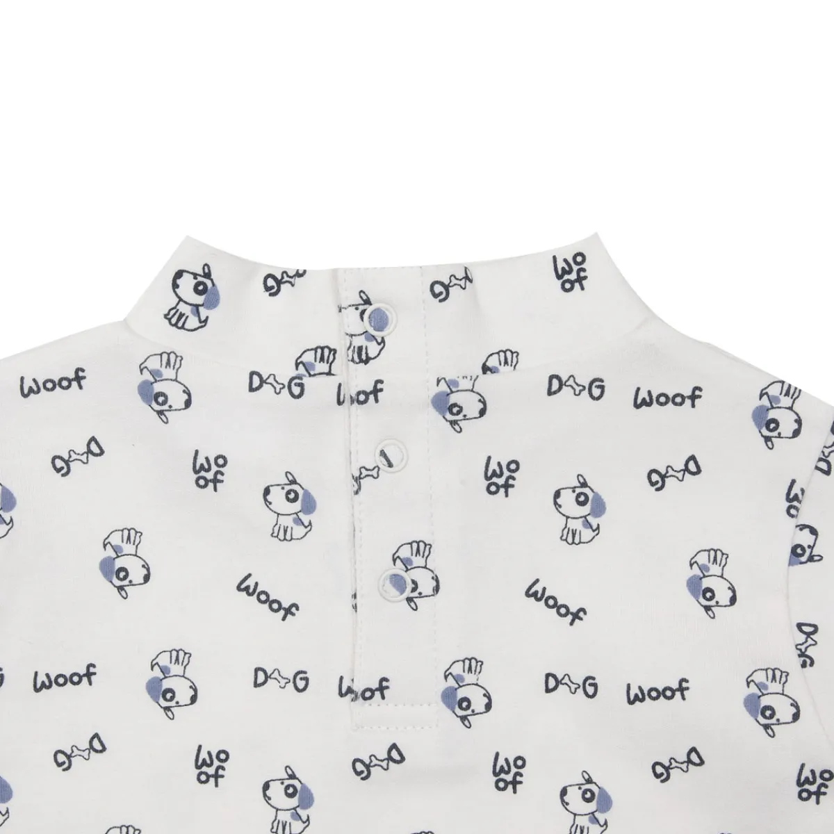 Lupetto in morbido caldo cotone in colore panna con stampa all over. L’apertura sul retro con bottoni a pressione facilita il passaggio testa. Disponibile in diverse varianti.