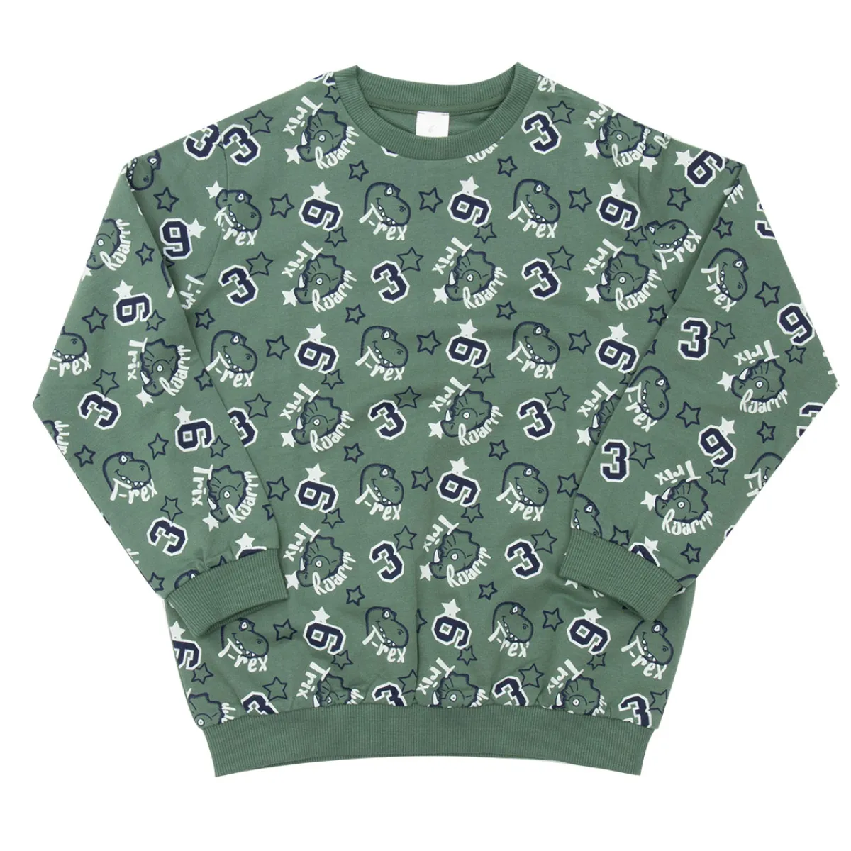 Maglia in morbida felpa stampa fantasia numeri e lettering. Le coste al fondo rendono confortevole il capo.