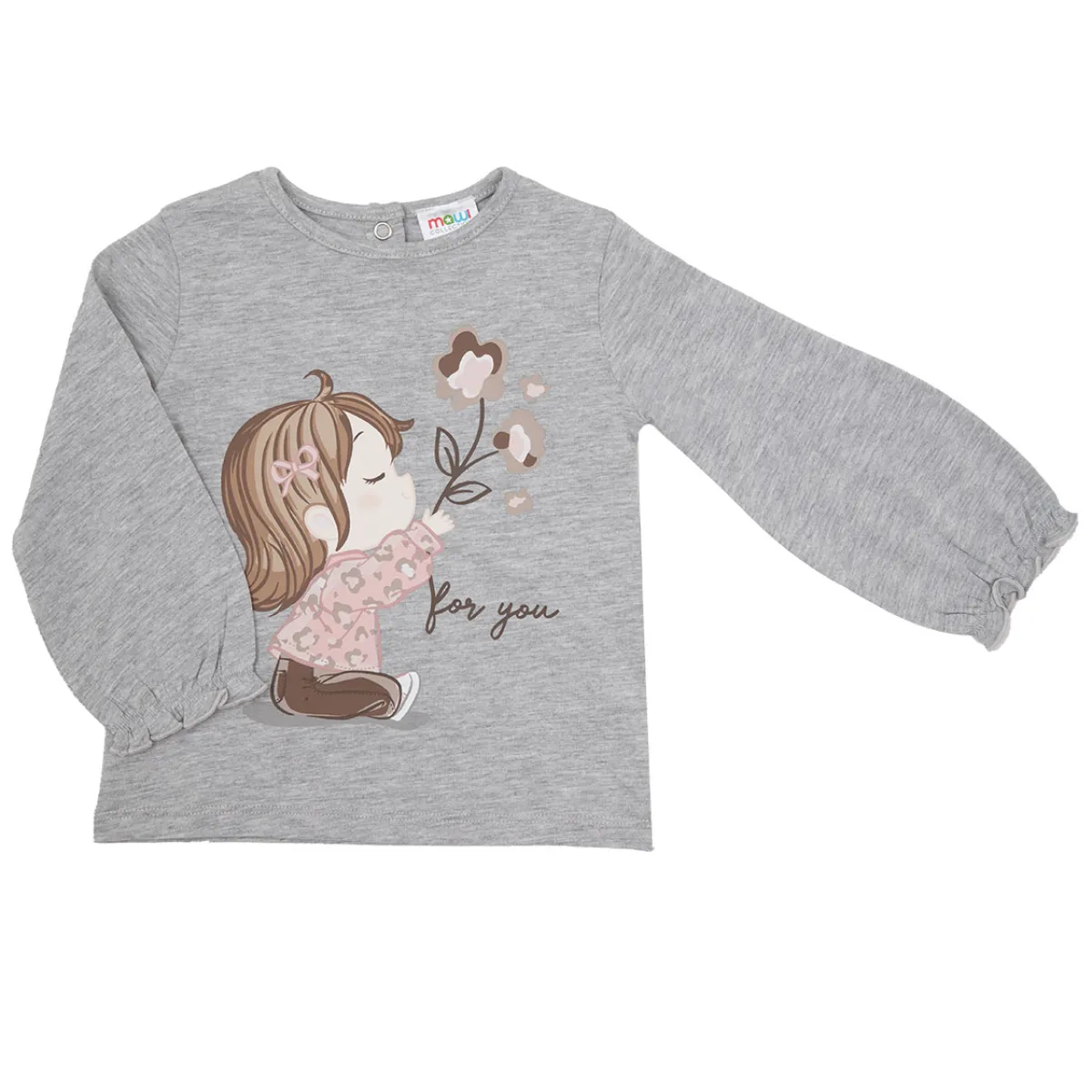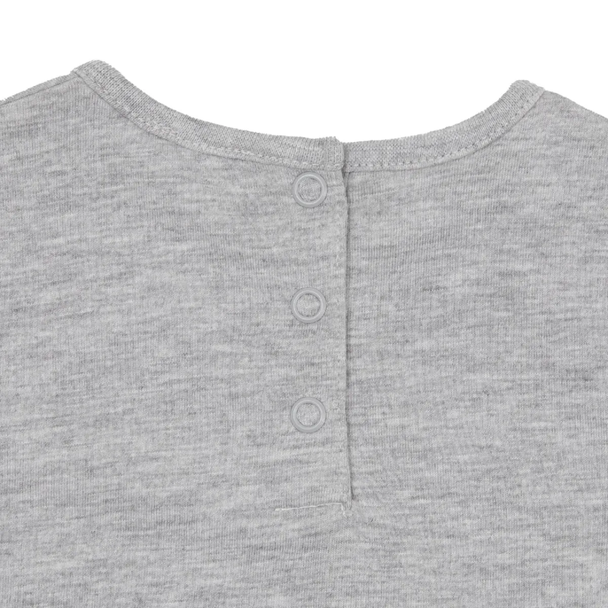 Maglia manica lunga jersey da bambina. Il capo si sviluppa in total grigio chiaro con stampa grande “dolce bimba”. La vestibilità è morbida e pratica grazie ai bottoni a clip sulla schiena. Modello girocollo. La T-shirt è facilmente combinabile per vari look. Accessori non in vendita. La confezione contiene solo il capo d’abbigliamento