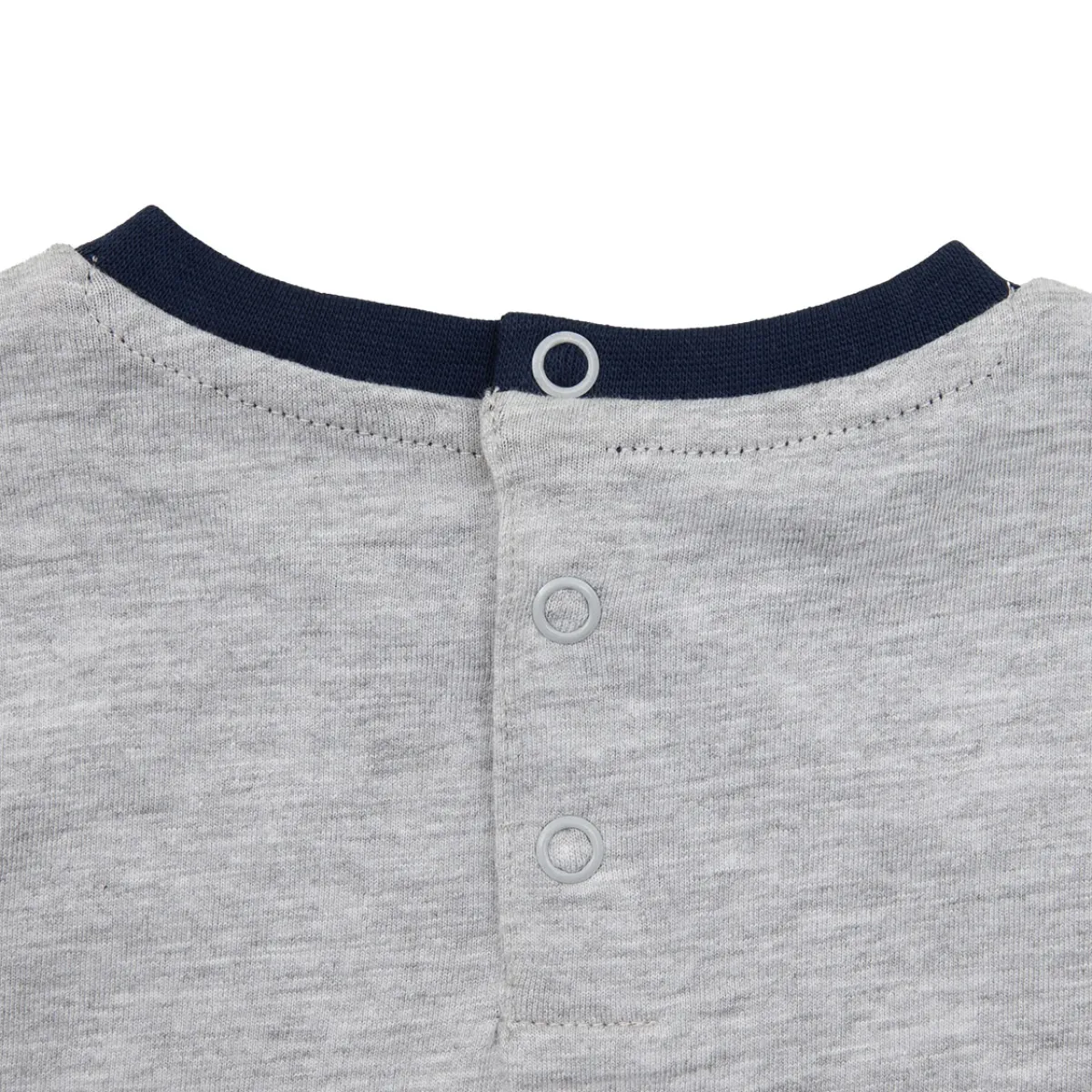 Maglia casual a maniche lunghe da bambino. Il capo si presenta in colorazione bicolor grigio chiaro-blu con stampa coordinata sul davanti. La vestibiilità è morbida e pratica grazie ai bottoni a clip sul retro. Modello girocollo. Il capo è facilmente combinabile per vari look. Accessori non in vendita. La confezione contiene solo il capo d’abbigliamento