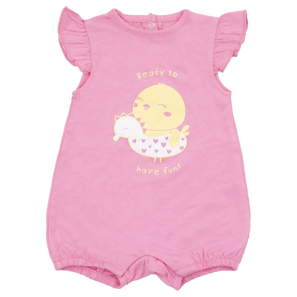 Fresco pagliaccetto jersey da bambina. Il capo si sviluppa su base rosa con stampa simpatica pulcino sul davanti. La vestibilità è mobirda e pratica grazie a bottoni a clip sul retro e sul cavallo. Accessori non in vendita. La confezione contiene solo il capo d’abbigliamento