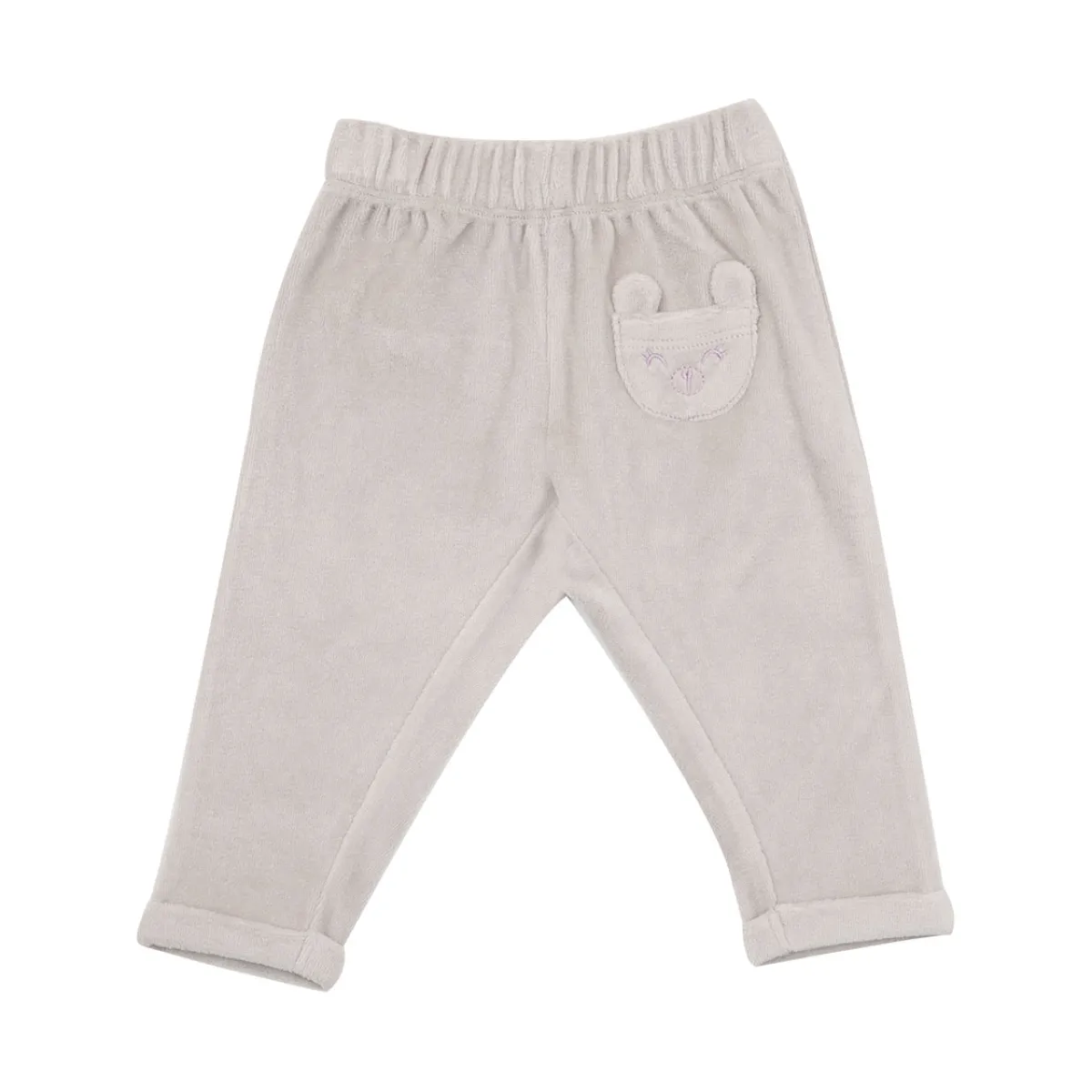 Pantalone ciniglia da bambina. Il capo si sviluppa in total beige, presente simpatica taschina sul davanti a forma di orsetto. La vestibilità è morbida. I pantaloni sono adatti per occasioni casual e facilmente combinabili. Accessori non in vendita. La confezione contiene solo il capo d’abbigliamento