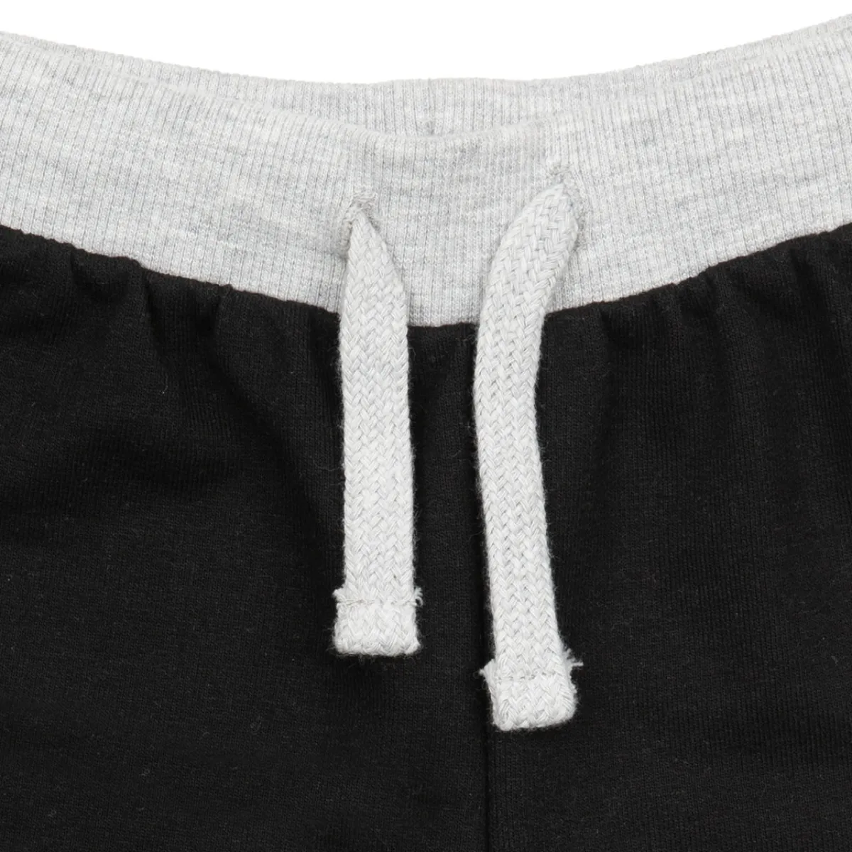 Pantalone in morbida felpa in cotone. La vita in costina elasticizzata in contrasto dona comfort al capo.