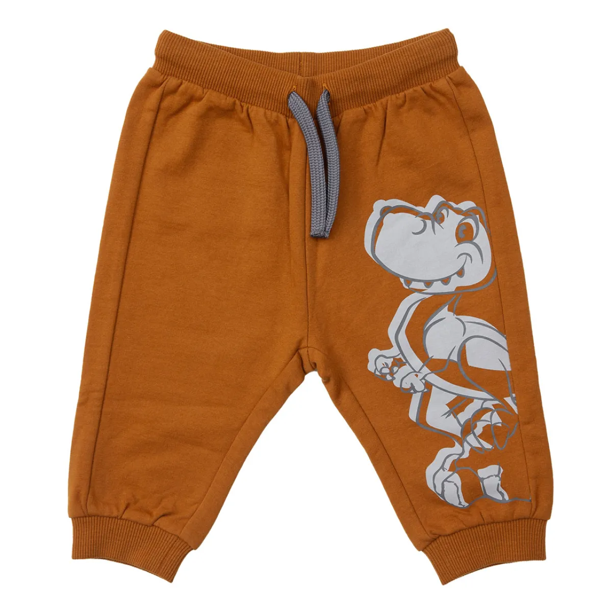 Pantalone in morbida felpa garzata con stampa laterale. Le costine al fondo ed in vita rendono confortevole il capo.