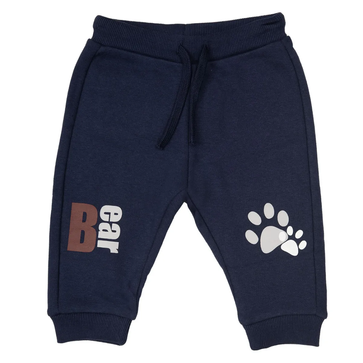 Pantalone in morbida felpa garzata con stampa sulle ginocchia. Le costine al fondo ed in vita rendono confortevole il capo.
