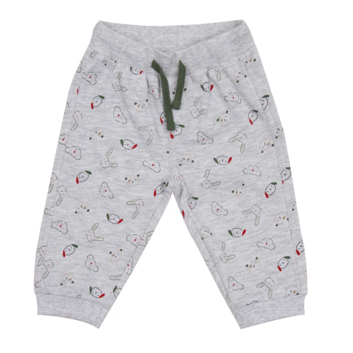 Pantalone in morbida felpa con una simpatica fantasia multicolor a fondo grigio melange. Vestibilita comoda grazie alla vita elasticata ed alla coulisse che facilita la vestizione. Un capo indispensabile per il guardaroba del tuo bambino e per l’ asilo nido.