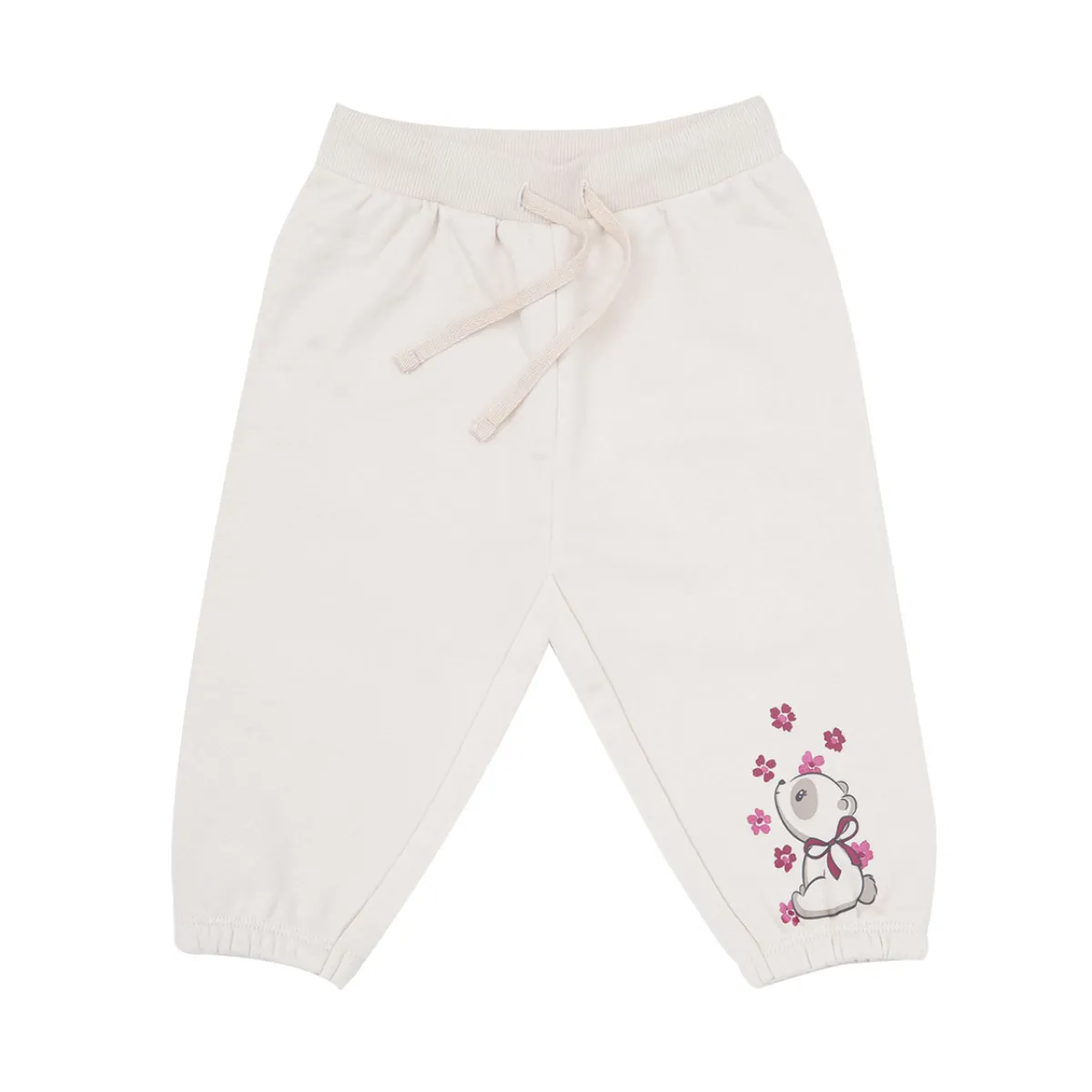 Casual pantalone felpato da bambina. Il capo si sviluppa in total beige con stampa piccola su una gamba a tema “animali del bosco”. La vestibilità è morbida e pratica grazie a elastico regolabile. Modello con coulisse sul girovita. Accessori non in vendita. La confezione contiene solo il capo d’abbigliamento