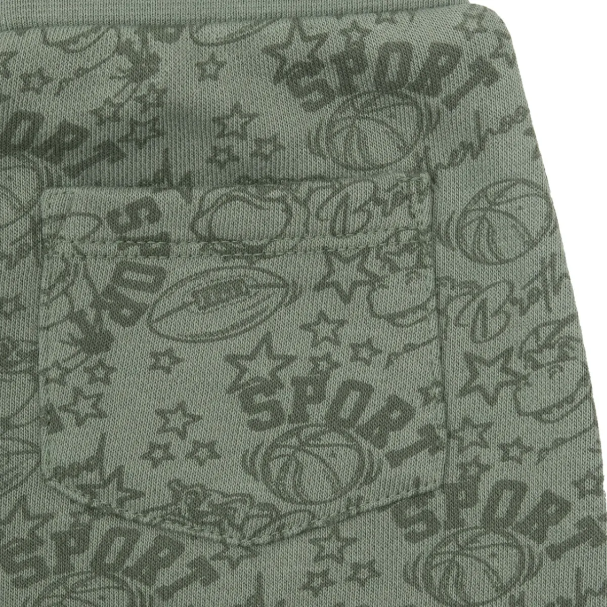 Casual pantalone felpato da bambino. Il capo si sviluppa in total verde con stampa allover “sport”. Modello con tasca posteriore. La vestibilità è morbida e regolabile grazie a elastico in girovita. Il pantalone da bambino è adatto per occasioni casual. Accessori non in vendita. La confezione contiene solo il capo d’abbigliamento