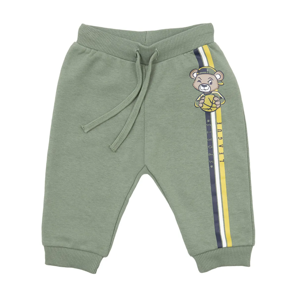 Casual pantalone felpato da bambino. Il capo si sviluppa in total verde con stampa simpatica e doppia banda colorata su una gamba. Modello con tasca posteriore. La vestibilità è morbida e regolabile grazie a elastico in girovita. Il pantalone semplice è adatto per occasioni casual e facilmente combinabile. Accessori non in vendita. La confezione contiene solo il capo d’abbigliamento