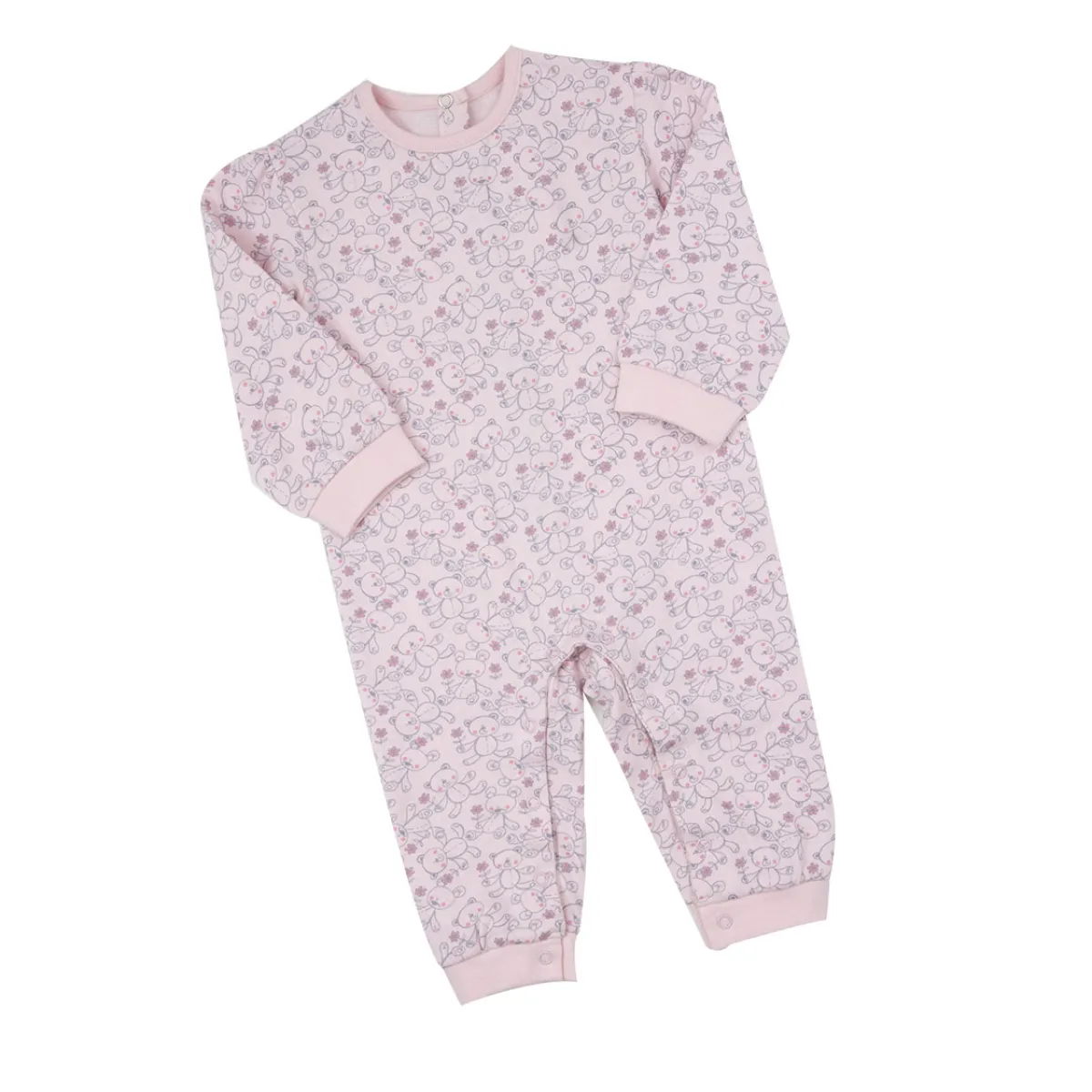 Pigiamone intero in morbida felpa mano calda, con stampa all over orsetti. L’apertura sul retro ed interno gamba, conferiscono maggior comfort al capo.