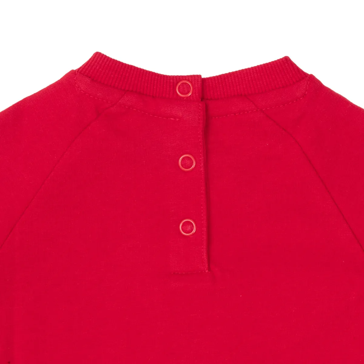 Pigiama due pezzi da bambino. Il capo si compone di maglia a maniche lunghe su base rossa con stampa grande “Christmas” e pantaloni coordinati con stampa allover. La vestibilità è morbida e pratica grazie a elastico in girovita, su polsini, caviglie. Modello girocollo con aperura sul retro con bottoni a clip. Accessori non in vendita. La confezione contiene solo il capo d’abbigliamento