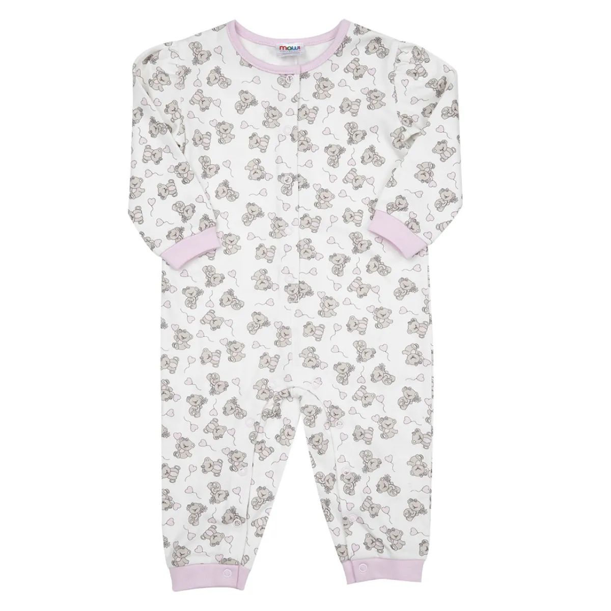 Tenero pigiama intero da bambina. Il capo si sviluppa su base bianco panna e particolari rosa, presente stampa allover orsetti coordinati. La vestibilità è morbida e pratica grazie a bottoni automatici sul davanti e sul cavallo. Accessori non in vendita. La confezione contiene solo il capo d’abbigliamento.