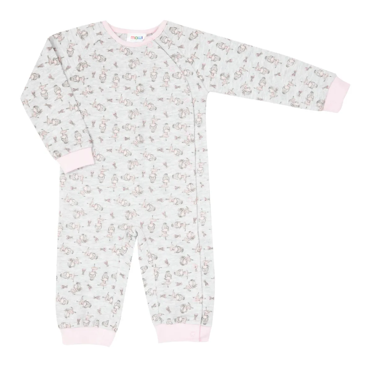Pigiamone intero felpato da bambina. Il capo si presenta in un pezzo unico in tonalità grigio chiaro e bordature rosa con stampa allover “ballerina”. La vestibilità è morbida e pratica grazie a bottoni a clip sul davanti e sul cavallo. Accessori non in vendita. La confezione contiene solo il capo d’abbigliamento