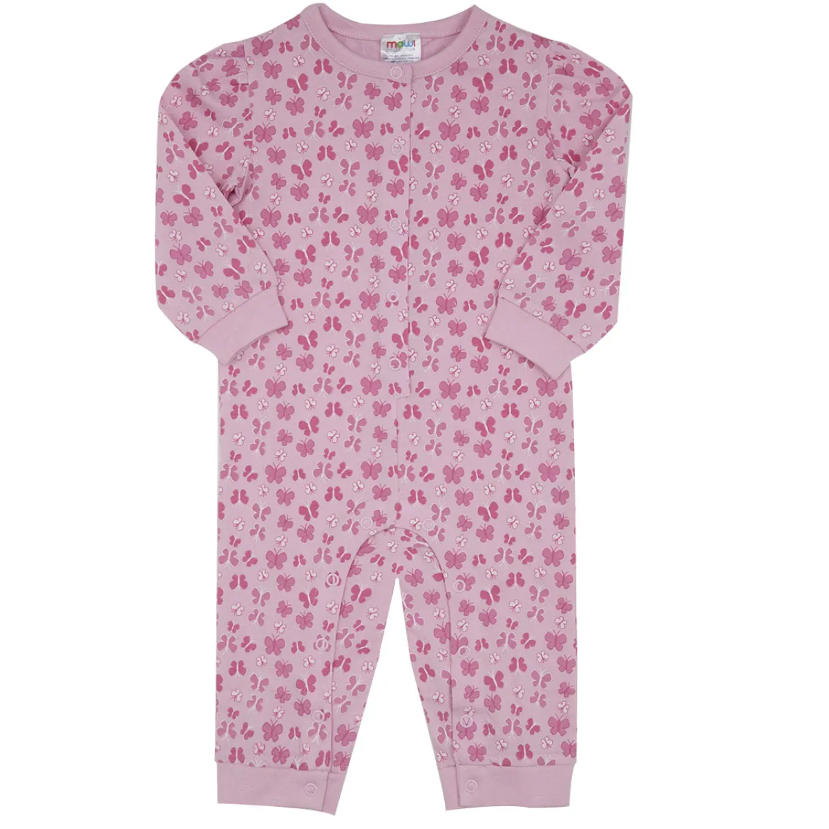Tenero pigiama intero da bambina. Il capo si sviluppa su base rosa chiaro con stampa allover disegnini farfalle coordinati. La vestibilità è morbida e pratica grazie a bottoni a clip sul davanti e sul cavallo. Accessori non in vendita. La confezione contiene solo il capo d’abbigliamento.