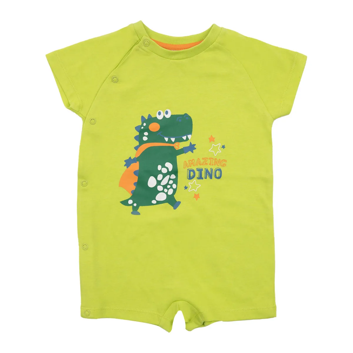 Pigiama estivo intero da bambino. Il capo si sviluppa su base verde chiaro con stampa coordinata a tema “Dino”. Modello girocollo. La vestibilità è morbida e pratica grazie ad apertura totale davanti e sul cavallo con bottoni a clip. Accessori non in vendita. La confezione contiene solo il capo di abbigliamento