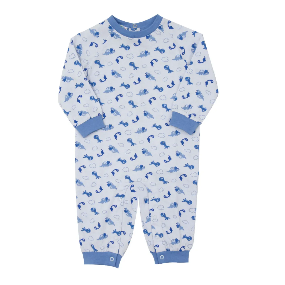 Pigiamone jersey da bambino . Il capo si presenta in un pezzo unico di colore azzurro chiaro con allover coordinata. La vestibilità è morbida e pratica grazie all’apertura sulla schiena e sul cavallo con bottoni a clip. Accessori non in vendita. La confezione contiene solo il capo d’abbigliamento