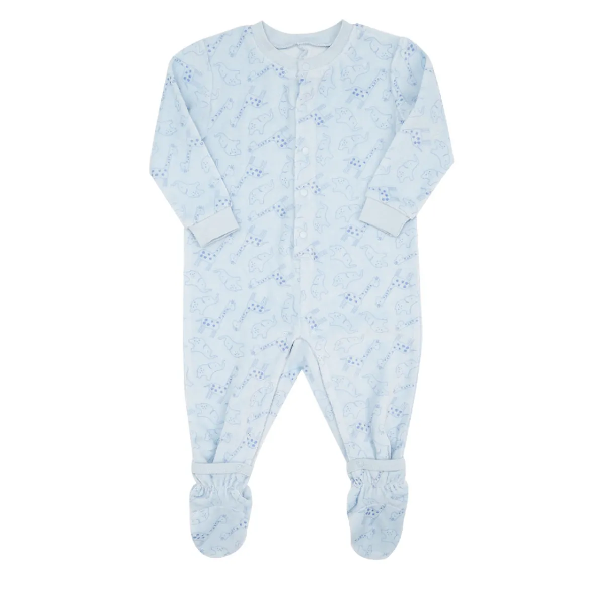 Pigiamone ciniglia da bambino. Il capo si presenta in un pezzo unico con piedini, in tonalità azzurro con stampa allover “animaletti”. La vestibilità è morbida e pratica grazie a bottoni a clip sul davanti e sul cavallo.Accessori non in vendita. La confezione contiene solo il capo d’abbigliamento