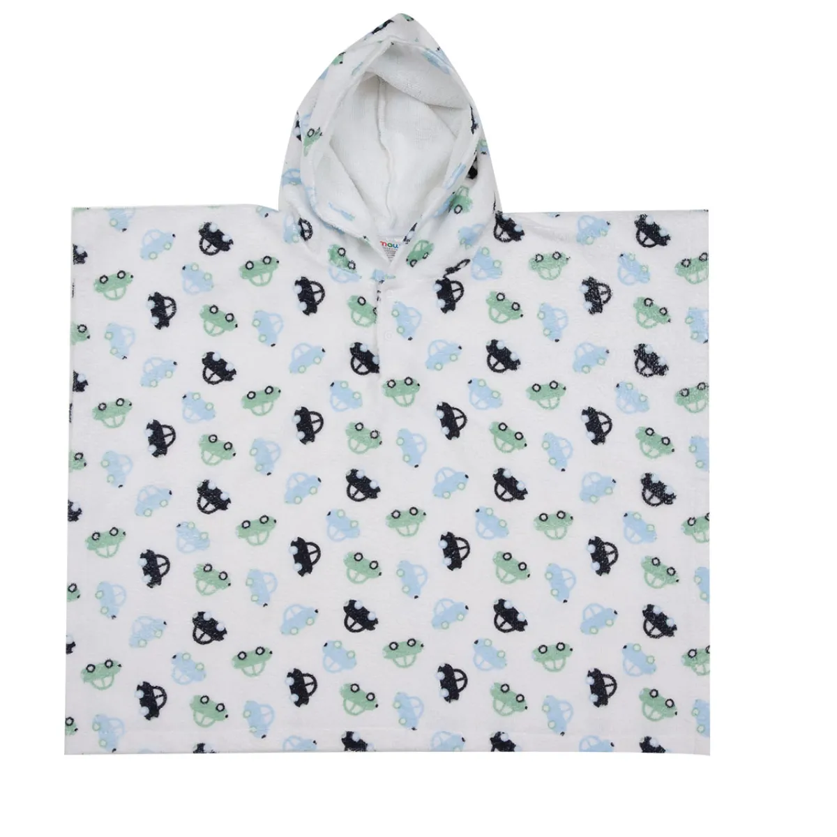 Indispensabile poncho in morbida spugna di cotone . Divertente fantasia unicorno multicolor. Per vivere il momento del bagnetto con dolcezza.