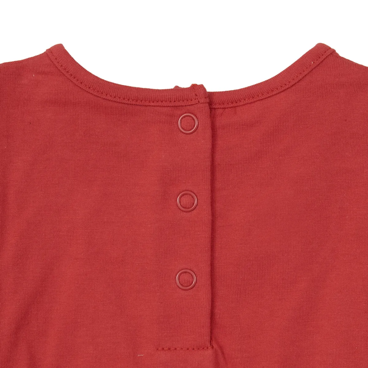 Set estivo da bambina composto da magliettina giromanica e gonna morbida. Il capo superiore si sviluppa su base rossa con stampa lumachine sul davanti e frill rigati sul giromanica; la parte inferiore si sviluppa con trama a righe orizzontali bianche/rosse e pieghe morbide. La vestibilità è morbida e pratica grazie ai bottoni a clip sulla schiena e elastico in girovita. Il capo è in cotone oeko – tex, testato per sostanze nocive garantisce alta sicurezza.Accessori non in vendita. La confezione contiene solo il capo d’abbigliamento