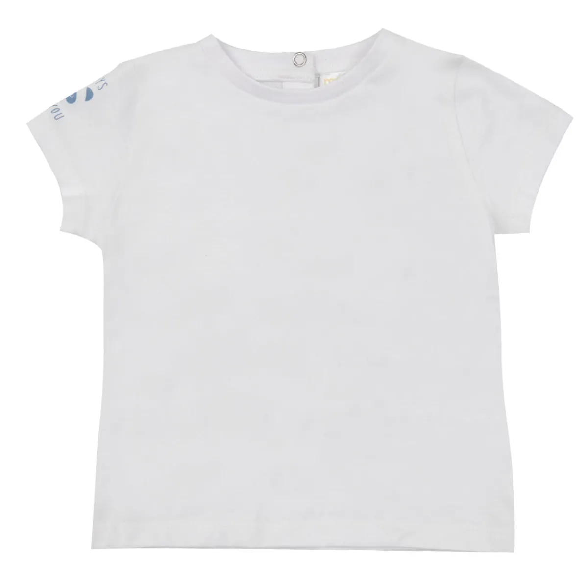 Completo due pezzi da bambino, t-shirt e salopette in denim. Il set è composto da magliettina bianca con piccola stampa azzurra su una manica, presente apertura sul retro con bottoni a clip, e da salopette in colorazione denim chiaro con tasche sul davanti e bretelle con bottoni a clip. Utilizzabili anche separatamente per la massima flessibilità nella scelta del look. Accessori non in vendita. La confezione contiene solo il capo d’abbigliamento