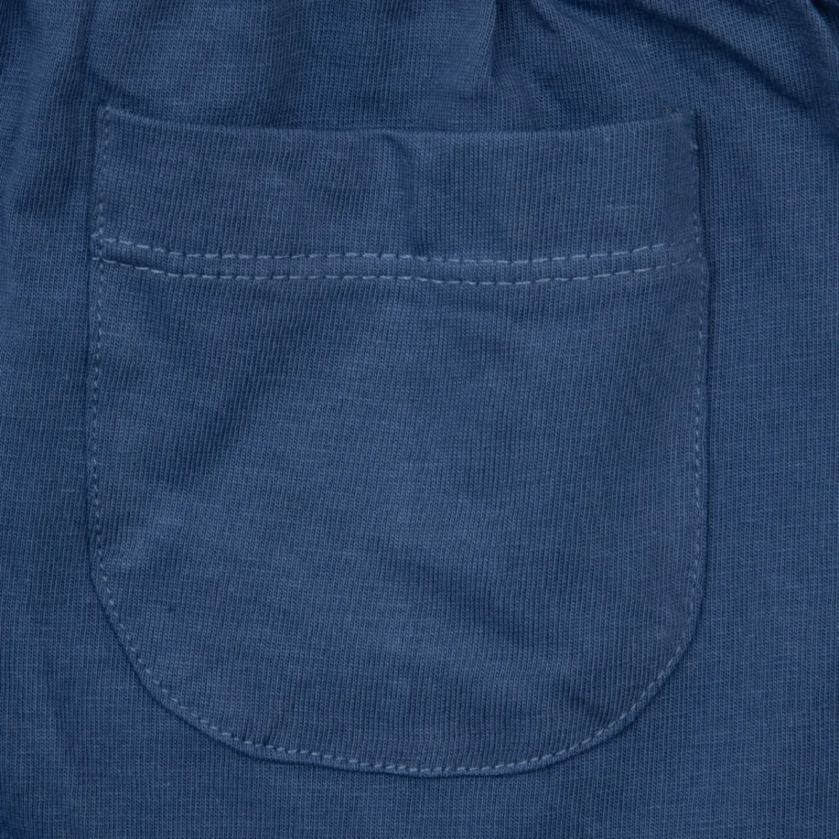 Set estivo da bambino composto da magliettina mezza manica e pantalcino morbido. Il capo superiore si sviluppa su base azzurra con stampa sul davanti; la parte inferiore si sviluppa in tinta unita blu con tasca posteriore. Modello girocollo. La vestibilità è morbida e pratica grazie a elastico in girovita regolabile