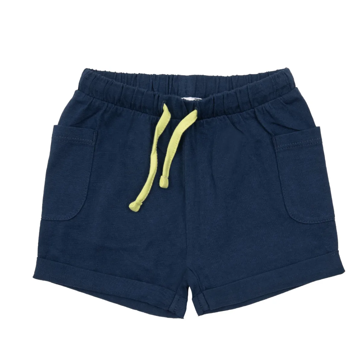Pantaloncino morbido da bambino. Il capo si presenta in total blu con particolare giallo. La vestibilità è morbida e pratica grazie ad elastico in girovita regolabile. Modello con tasche grandi sui fianchi. Lo short è adatto per un look casual/sportivo. Accessori non in vendita. La confezione contiene solo il capo d’abbigliamento