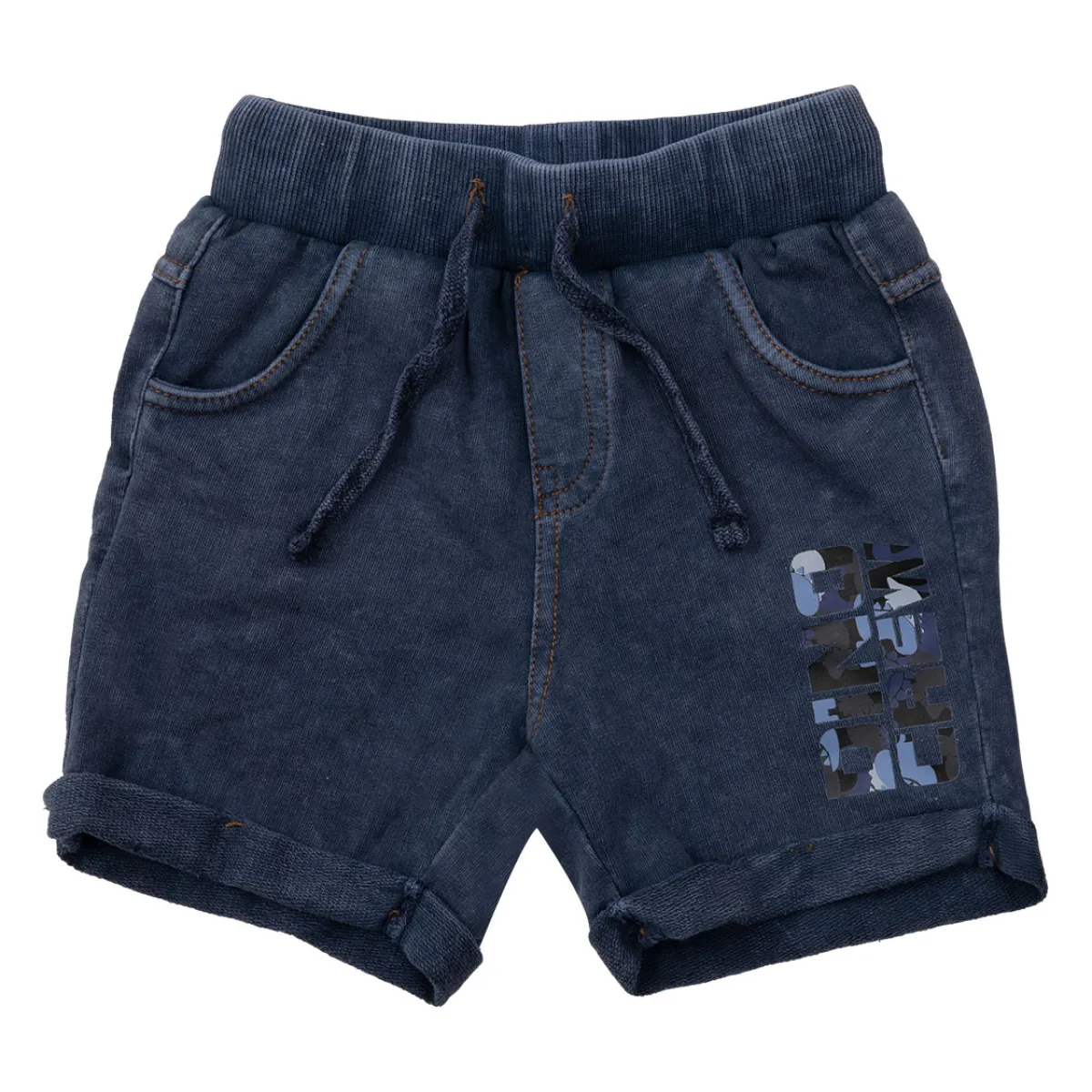 Pantaloncino morbido da bambino finto denim. Il capo si presenta in colorazione blu scuro con piccola stampa su una gamba. Modello con tasche a taglio trasversale sul davanti. La vestibilità è morbida e pratica grazie all’elastico in girovita regolabile. Lo short è facilmente combinabile per vari look.Accessori non in vendita. La confezione contiene solo il capo d’abbigliamento