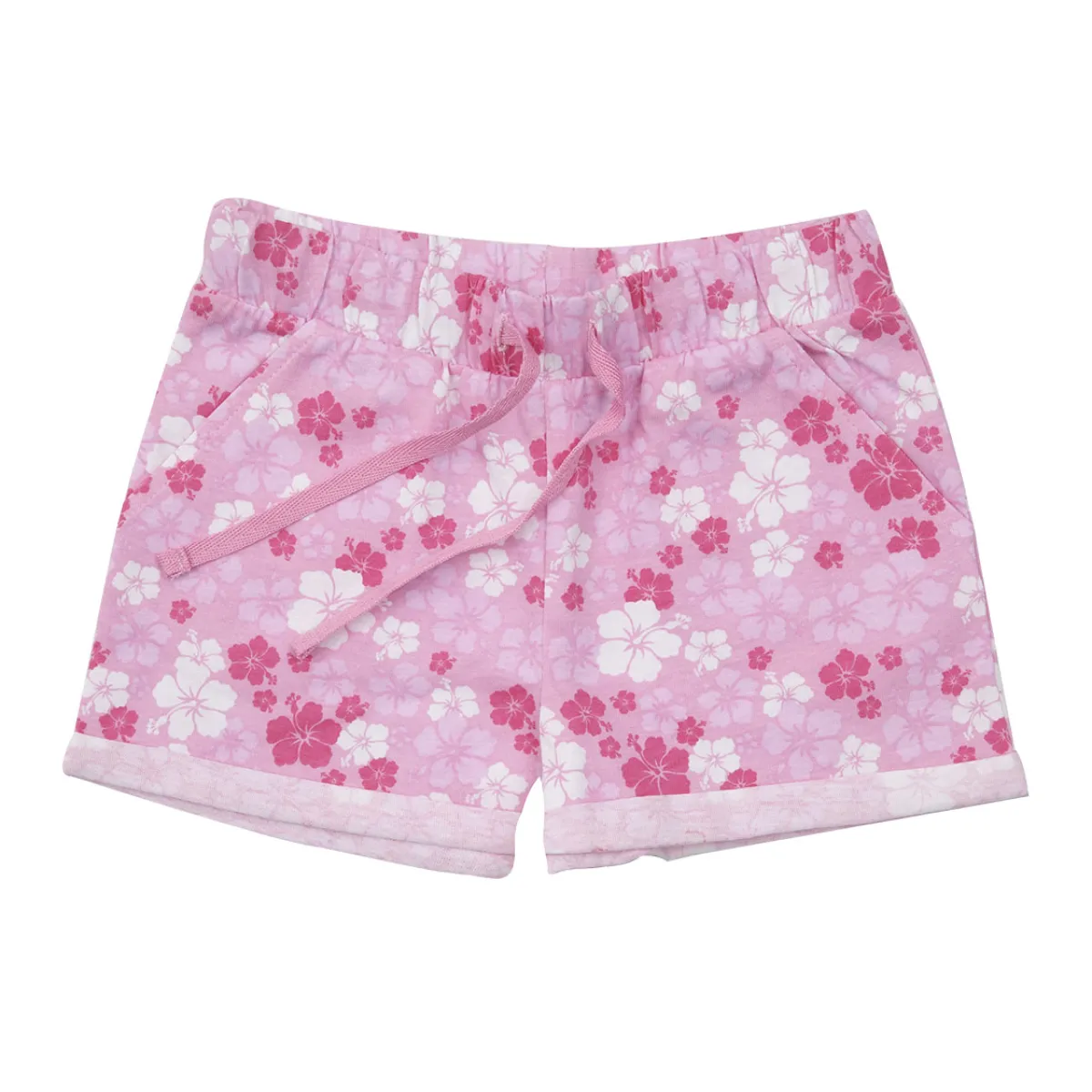 Pantaloncino morbido da bambina. Il capo si presenta con sfondo rosa e stampa allover a tema floreale. La vestibilià è morbida e pratica grazie a elastico regolabile in girovita. Modello con tasche lateragli a taglio trasversale. Accessori non in vendita. La confezione contiene solo il capo d’abbigliamento