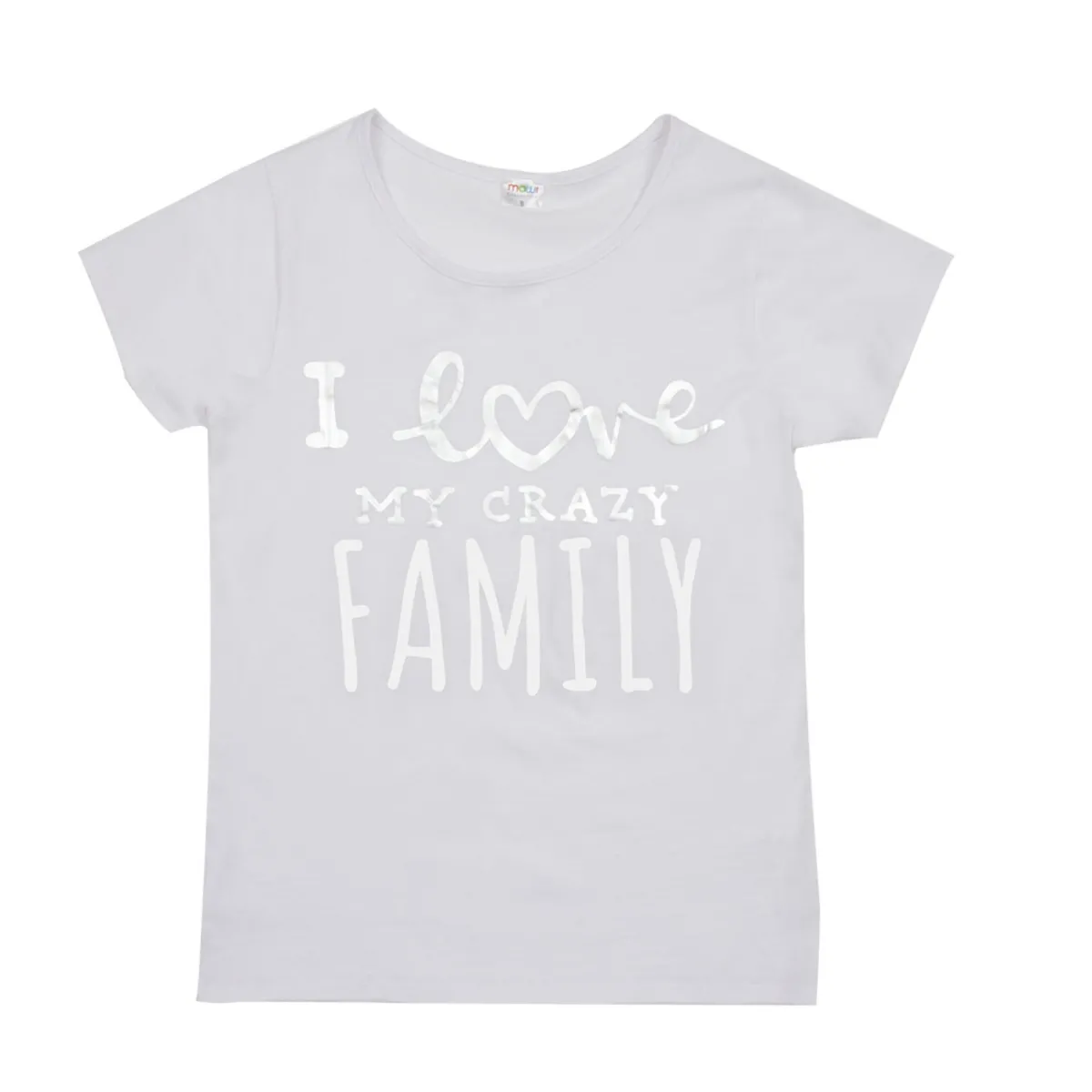 T-shirt bianca mamma in jersey manica corta con scritta “I love my crazy family”