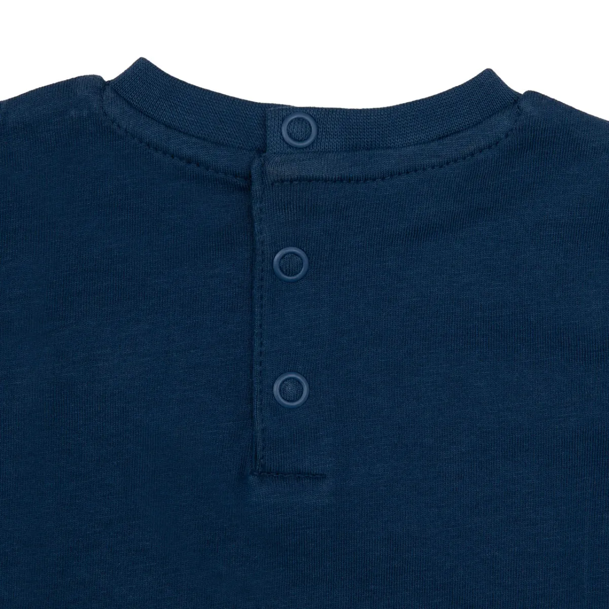 T-shirt manica lunga jersey da bambino basic. Il capo si sviluppa in total blu. La vestibilità è morbida e pratica grazie a bottoni a clip sul retro. La t-shirt da bambino è facilmente abbinabile per vari look. Accessori non in vendita. La confezione contiene solo il capo d’abbigliamento