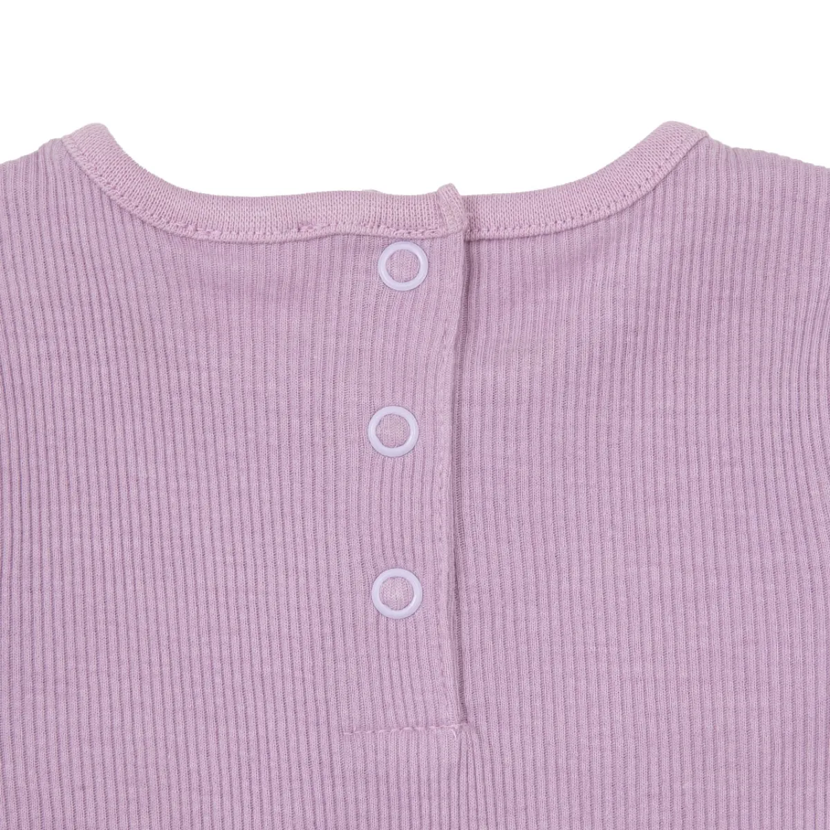 Maglia manica lunga da bambina. Il capo semplice si presenta in tinta unita lilla con trama verticale. Presenti rouches su giromanica e girovita. La vestibilità è morbida e pratica grazie ai bottoni a clip sulla schiena. La T-shirt è adatta per occasioni casual e facilmente combinabile. Accessori non in vendita. La confezione contiene solo il capo d’abbigliamento