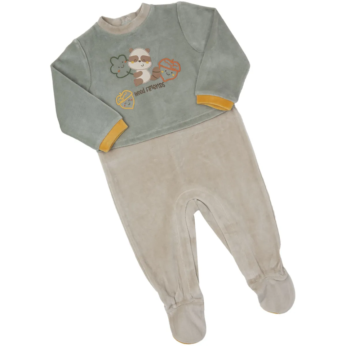 Deliziosa tutina in morbida ciniglia finto doppio bi colore con dettagli in contrasto. Il capo ha come protagonista un simpatico procione. Oltre all’apertura sul retro la tutina presenta una comoda apertura entrogamba .Vestibiilità comoda.