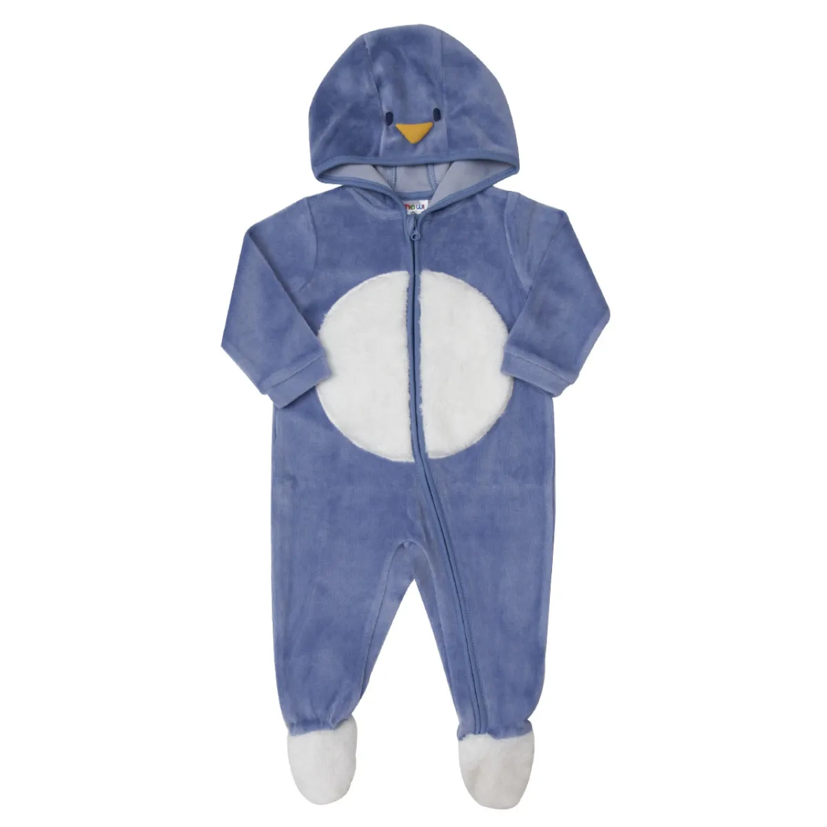 Delizioso tutone con cappuccio in ciniglia e inserti in contrasto in pelliccetta . Il capo è arricchito da un simpatico disegno sul cappuccio .Oltre all’apertura con zipp davanti presenta una comoda aperture interno gamba per facilitare il cambio.Modello certificato oeko-tex.