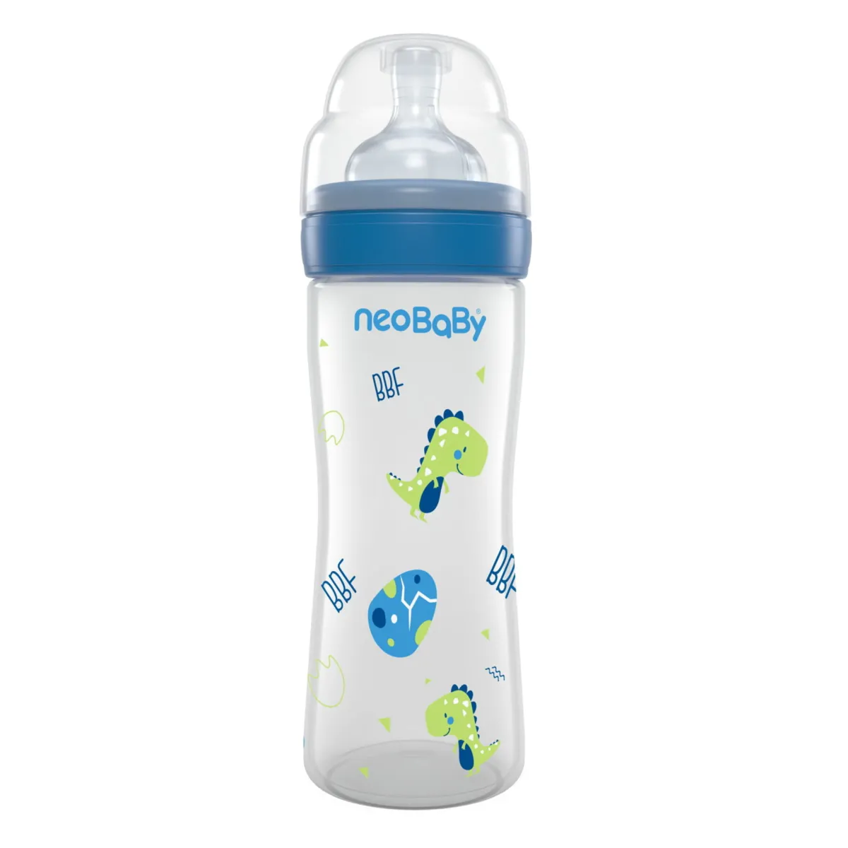 Neo Baby Neobaby biberon plastica collo largo silicone 250ml flusso regolabile blu 2m+