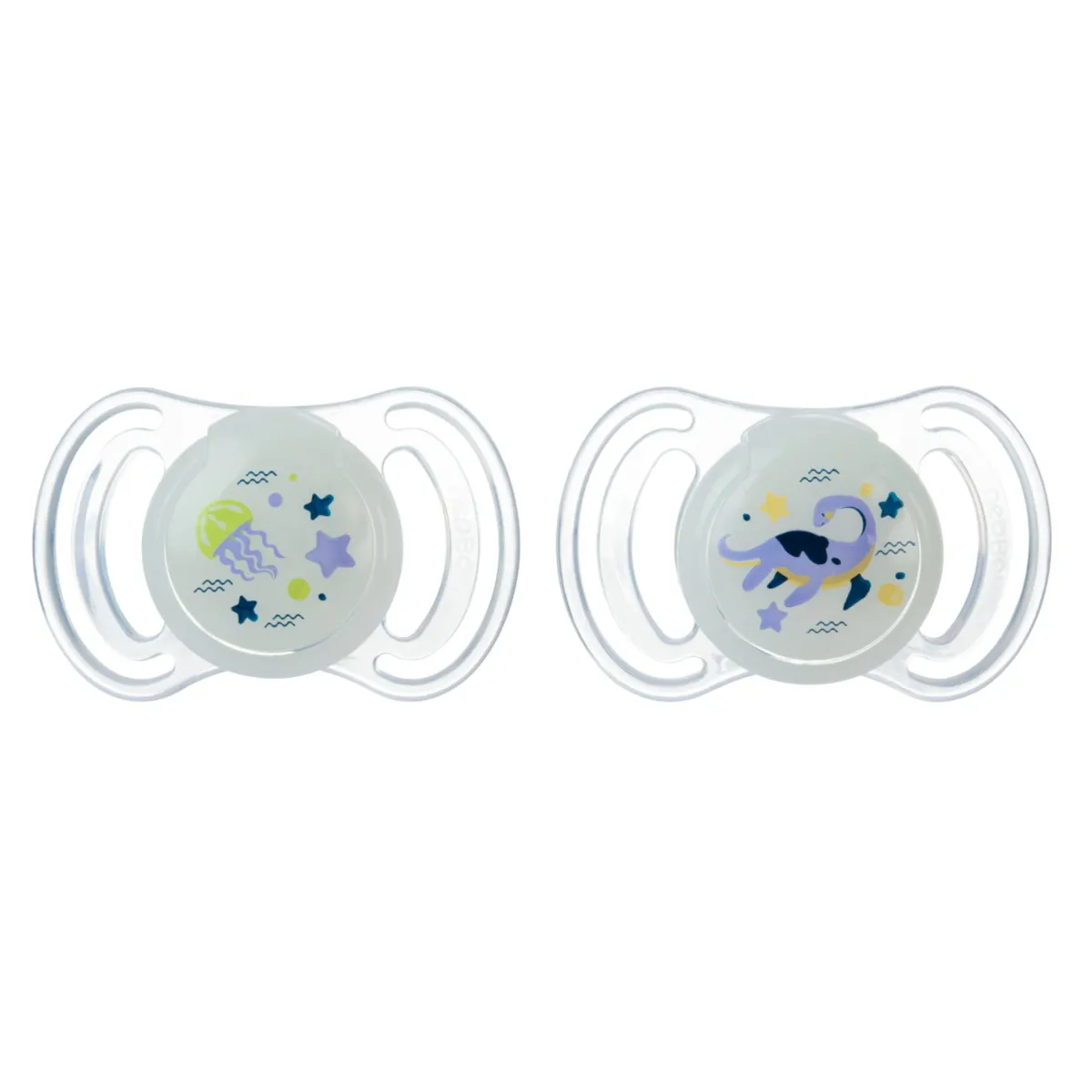 Le tettine anatomiche seguono la conformazione naturale del palato e non ostacolano il posizionamento della lingua, sono disponibili in tre differenti misure: 0m+, 6m+, 12m+
