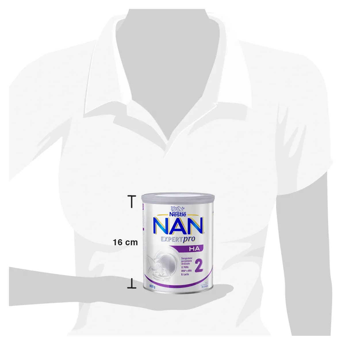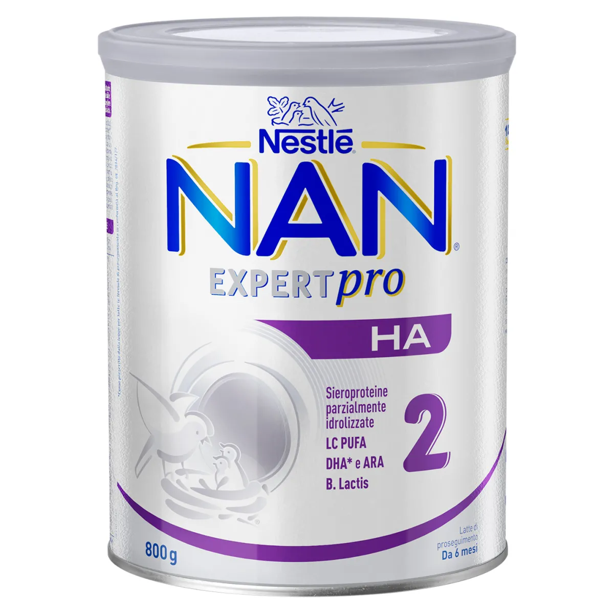 Nestlé NAN HA 2 è un latte di proseguimento in polvere, per l’alimentazione del lattante a partire da 6 mesi di vita. E’ formulato per far parte di una alimentazione diversificata, da iniziare secondo le indicazioni del pediatra. Nestlé NAN HA 2 non deve essere utilizzato in caso di allergia già manifesta alle proteine del latte vaccino.