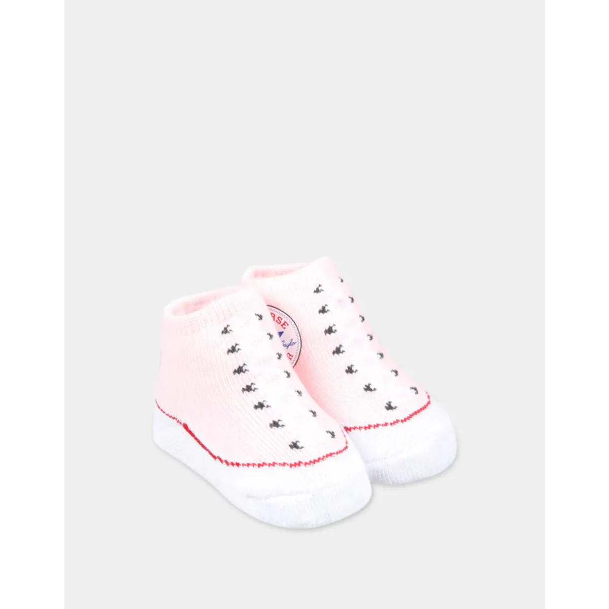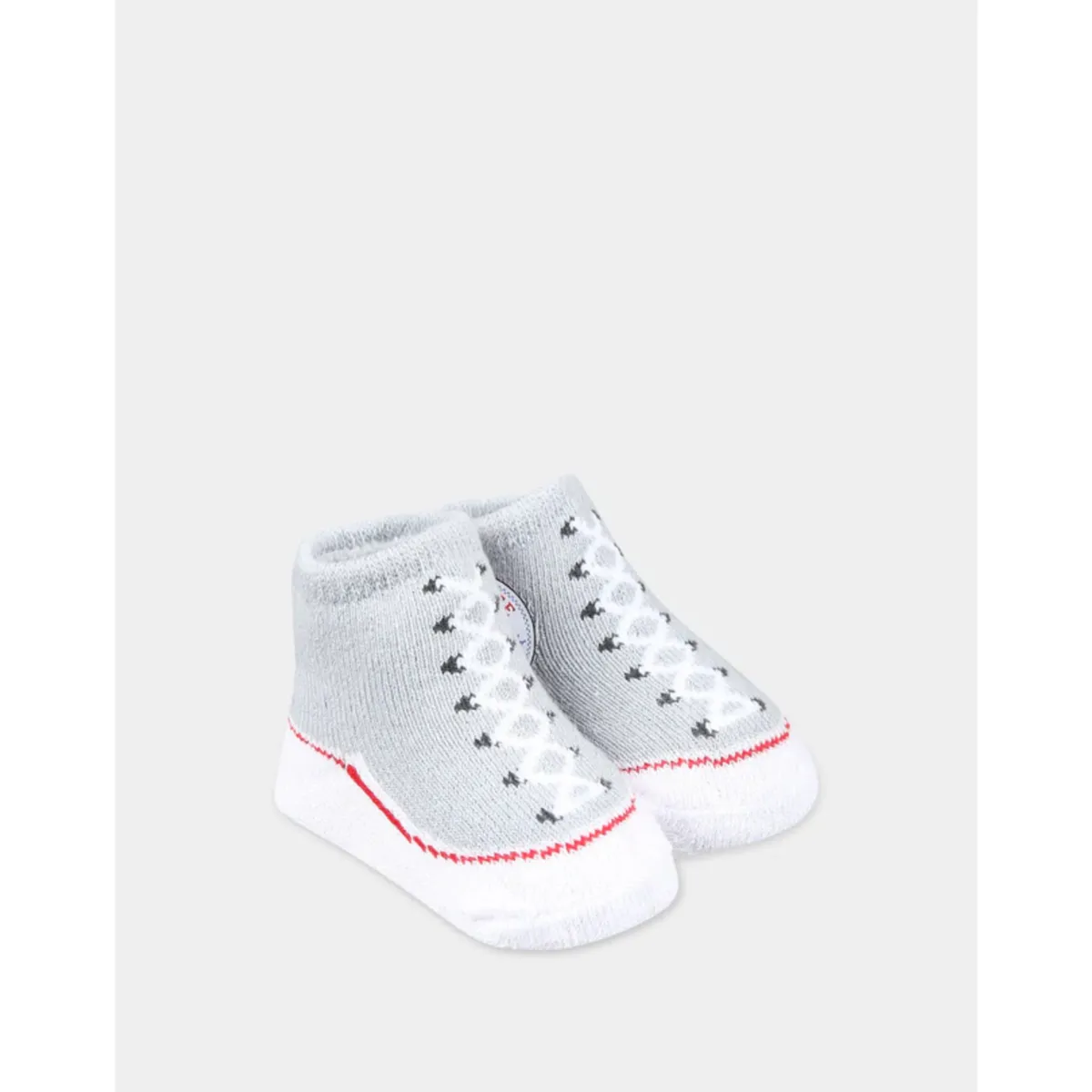 Set composto da due paia di babbucce, un piaio grigio e uno rosa. Sono decorate con patch logo e rifiniture rosse.Composizione:82%cotone – 16%poliestere – 2%elastan