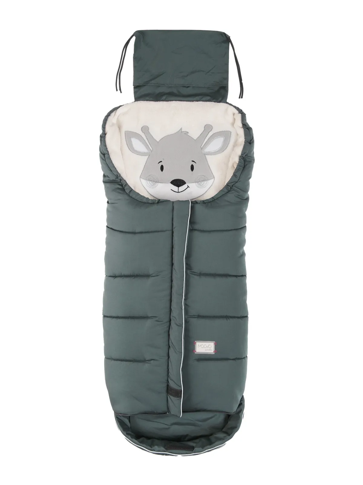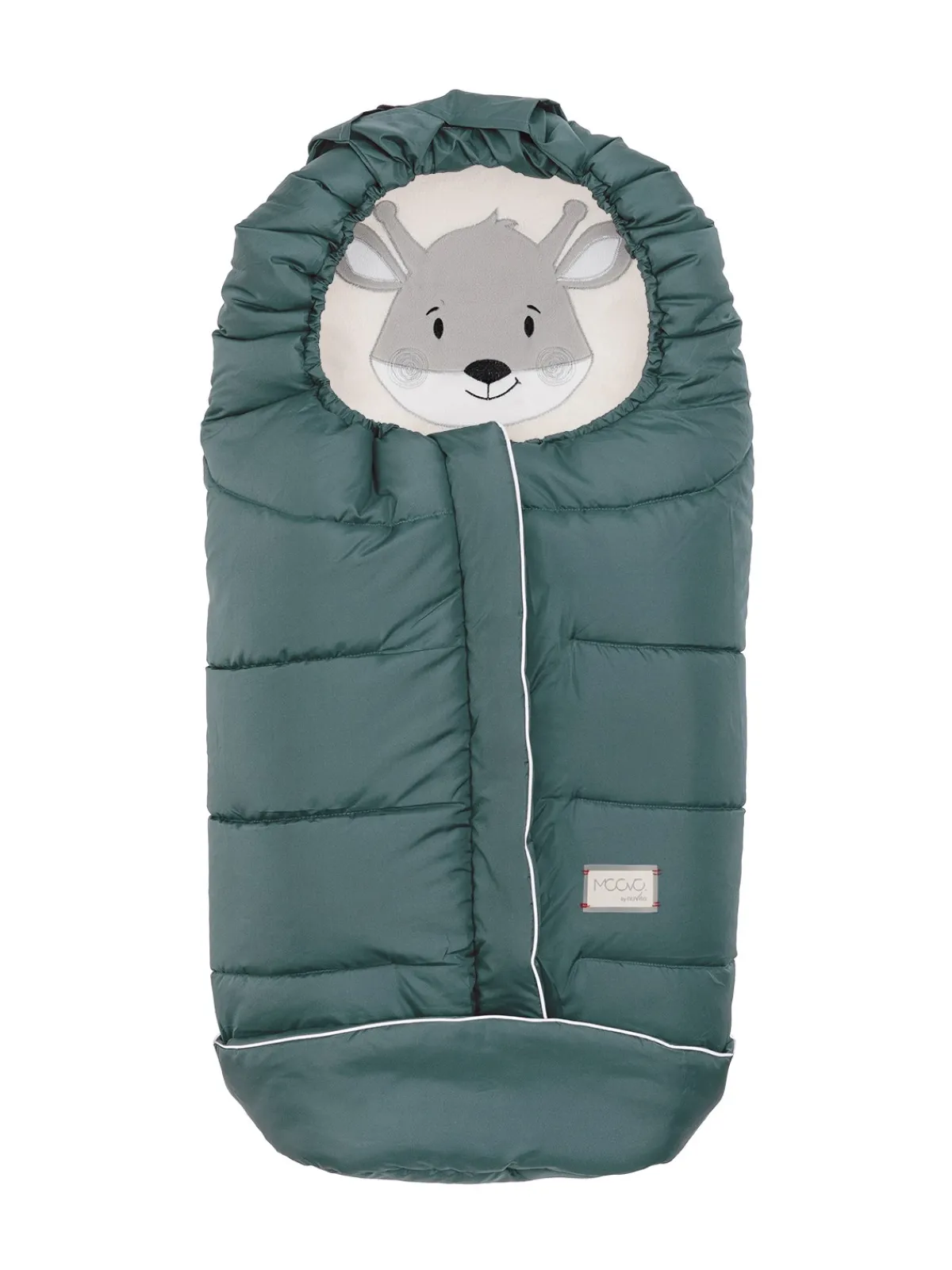 Il sacco universale per passeggino Moovo Junior Cuccioli con simpatici animaletti mantiene il bambino caldo e protetto durante le stagioni più rigide. Adatto a temperature fino a -13°C, è leggero, antimacchia, impermeabile e antivento. Adatto per bambini da 6-36 mesi (lunghezza sacco termico 100cm). L’imbottitura in RPET (materiale ottenuto dal riciclo delle bottiglie di plastica) da 400 gr è ecologica ed ecosostenibile, traspirante, antiallergica, morbida e molto calda. Il tessuto esterno con finitura “effetto seta” dona un maggior calore e lo rende un sacco termico particolarmente morbido e amato dai bambini. L’interno morbido e traspirante trattiene il calore del corpo e garantisce una temperatura corporea sempre ottimale.