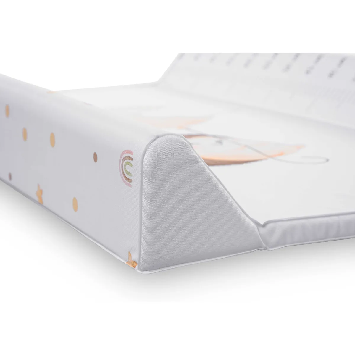 Soffice materassino dotato di due sponde laterali,facile da pulire e molto morbido, con un metro disegnato per seguire la crescita del bambino. In pvc atossico.