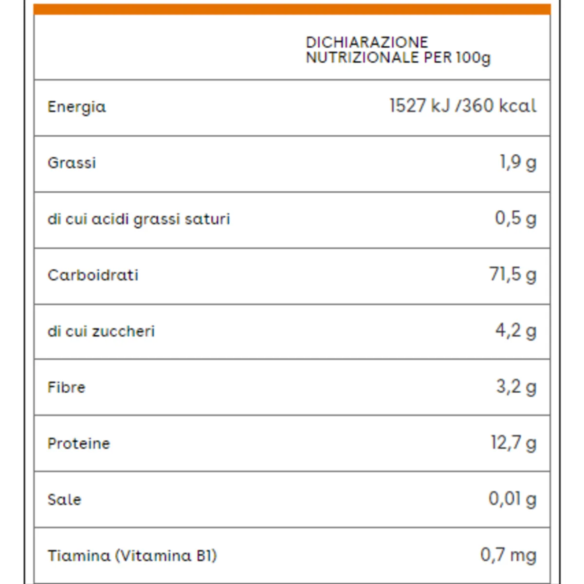 Ingredienti: Semola di grano duro* (69,9%), farina di farro* (30%), tiamina.