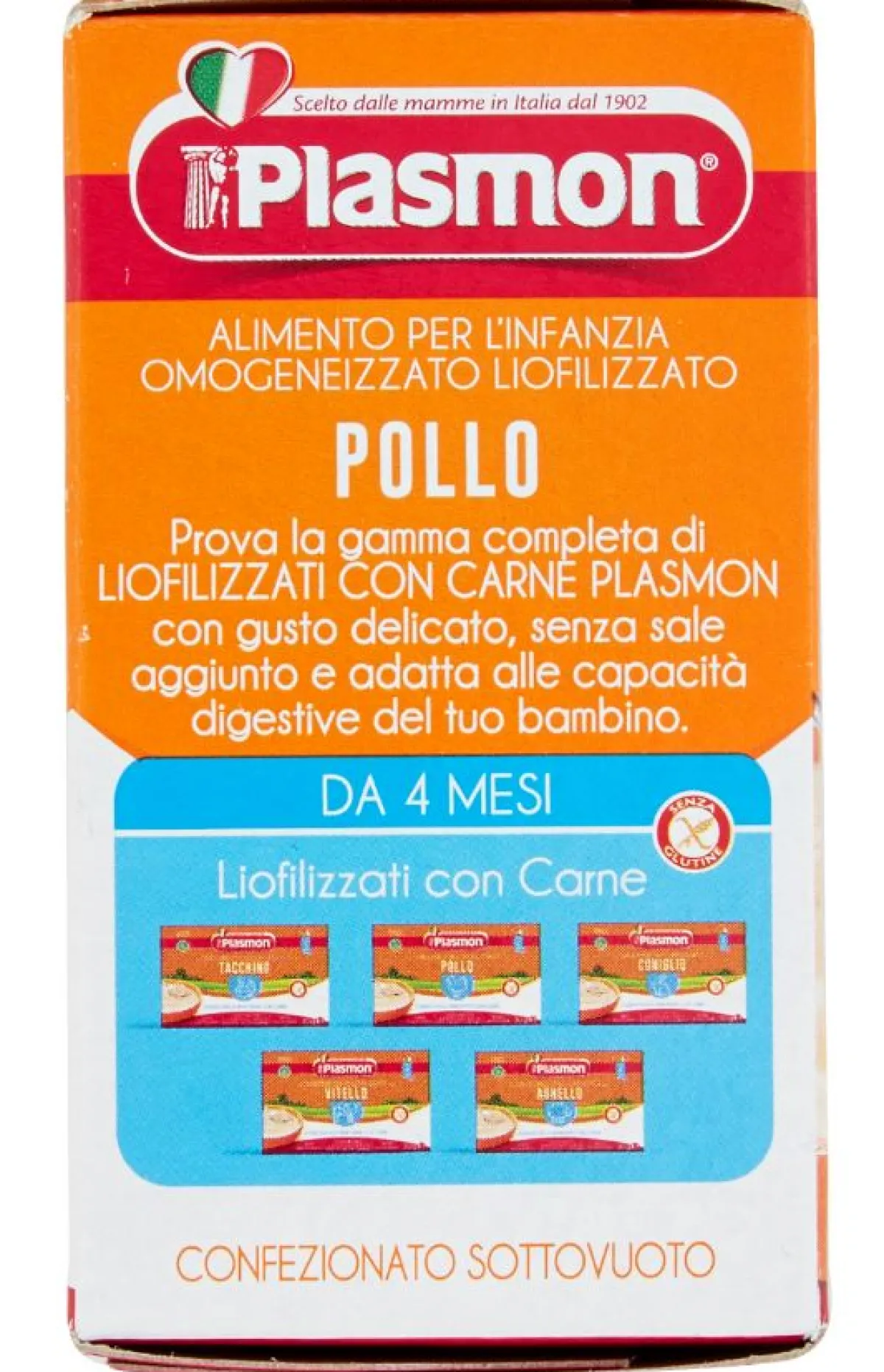 Il Liofilizzato di pollo Plasmon è adatto per le prime fasi dello svezzamento. Il pollo è una carne bianca dal gusto delicato.