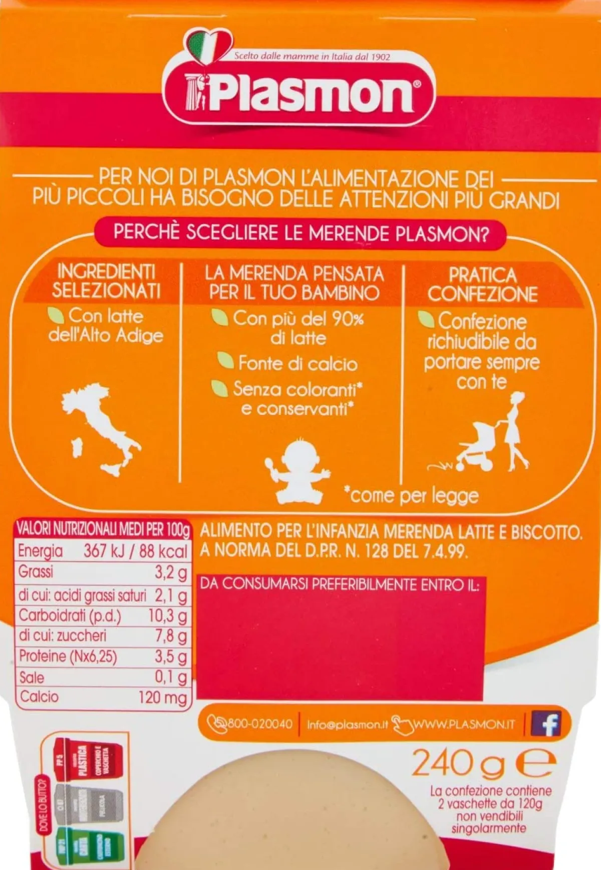 Con Biscotto Plasmon: preparato con ingredienti di alta qualità e arricchito con vitamine.